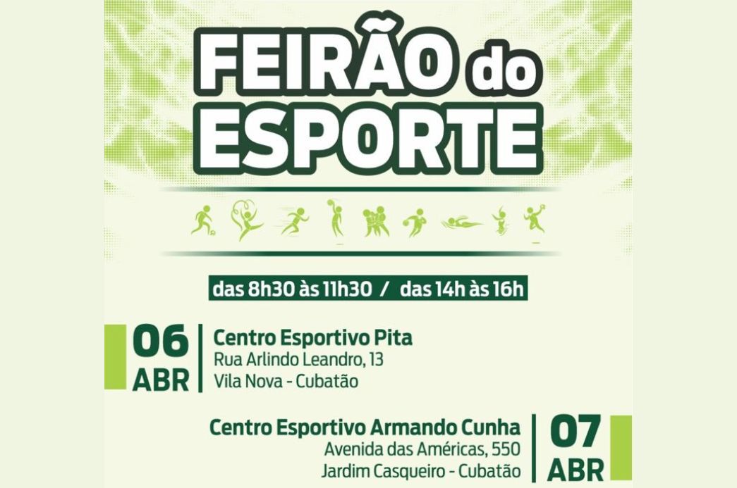 Dias 6 e 7 de abril: Feirão do Esporte apresenta modalidades esportivas à população durante aniversário de Cubatão