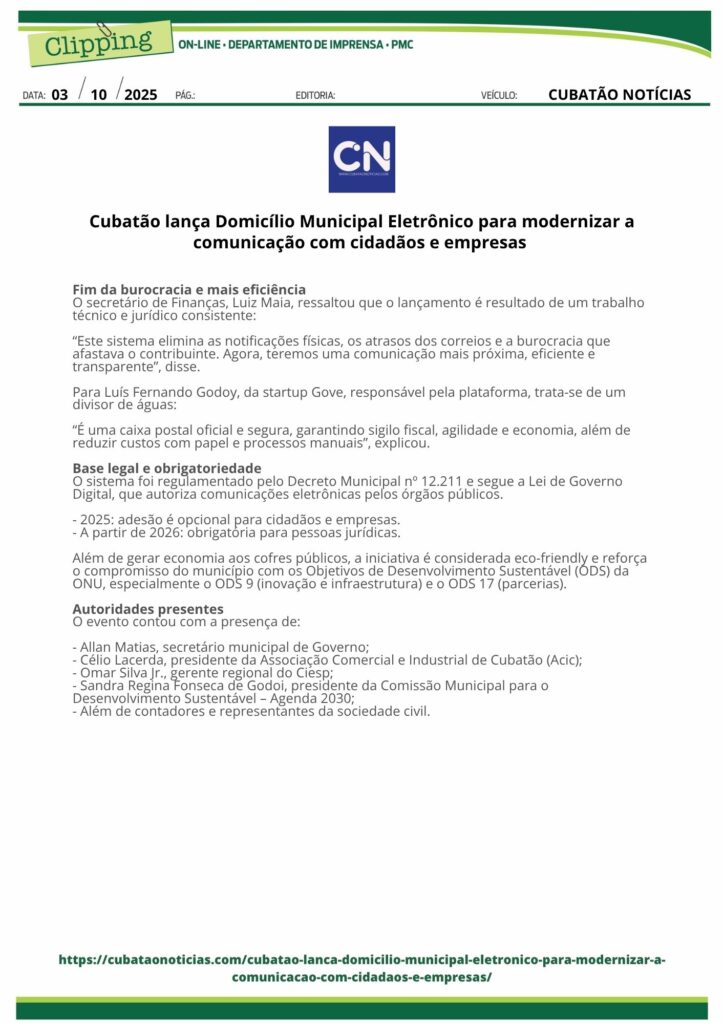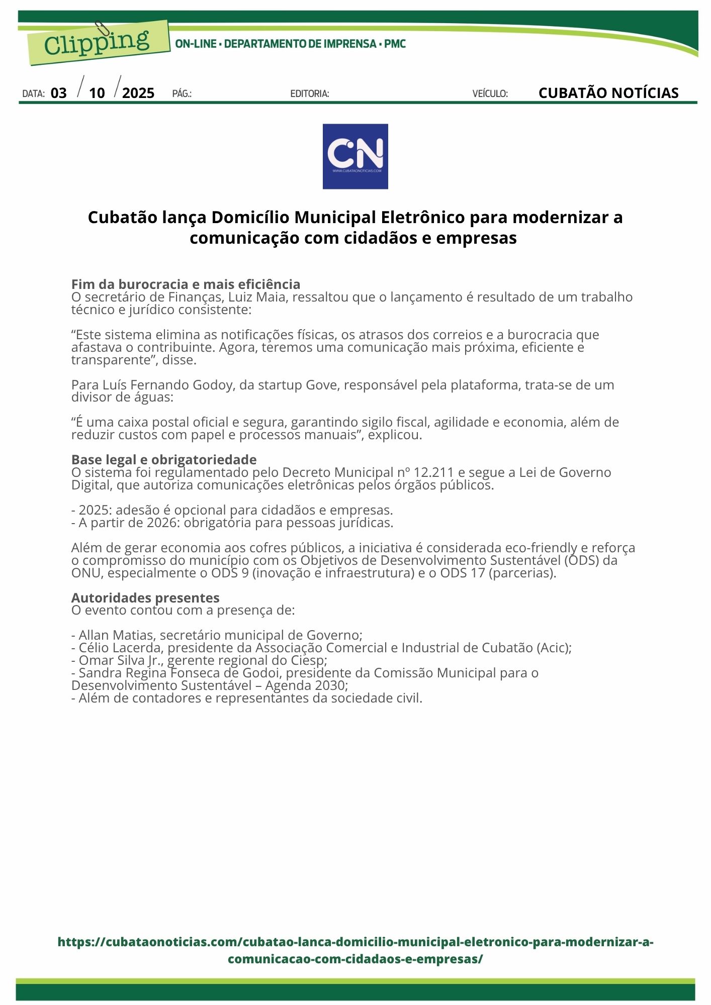 Solicitação de Acesso ao ISS-Web para empresas de Fora de Cubatão