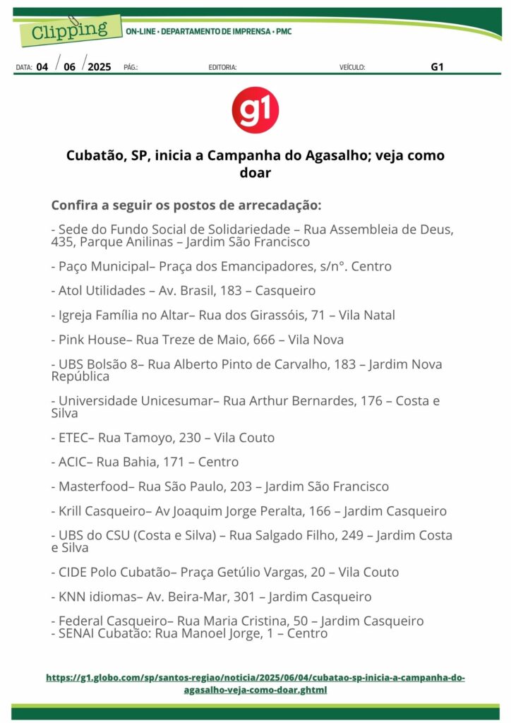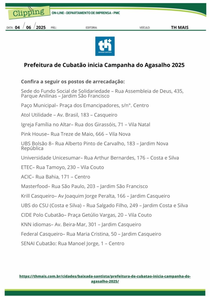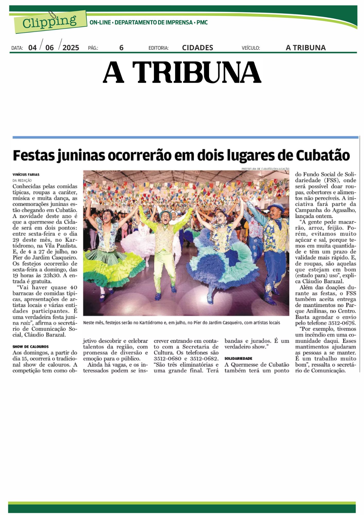 • Praça dos Emancipadores, s/nº - Centro - Cubatão/SP - CEP 11510-900