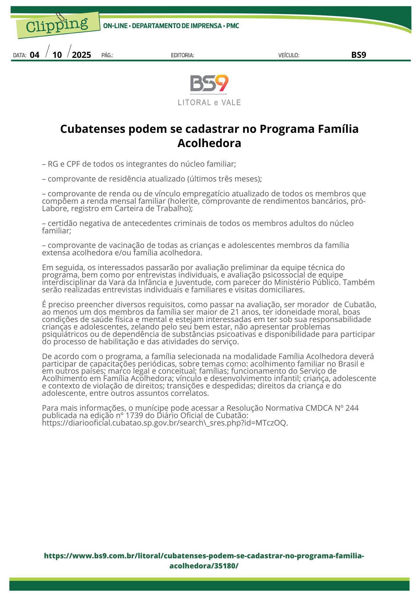 Solicitação de Acesso ao ISS-Web para empresas de Fora de Cubatão