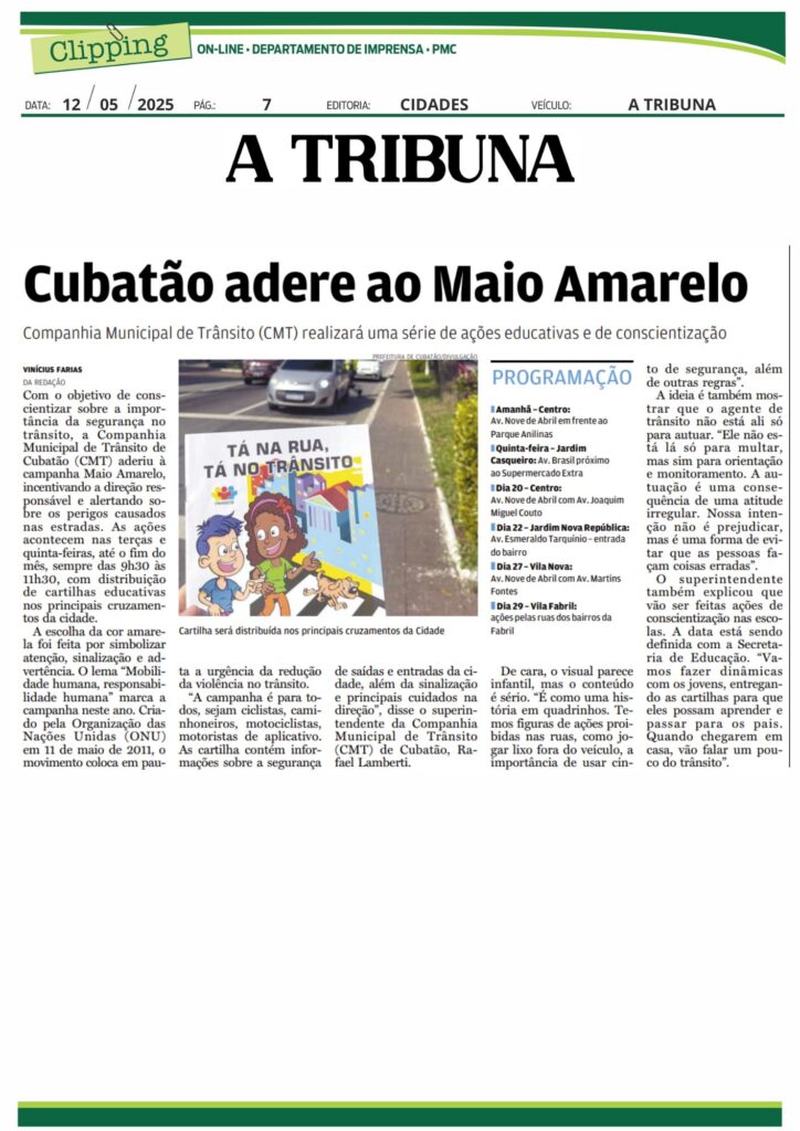 • Praça dos Emancipadores, s/nº - Centro - Cubatão/SP - CEP 11510-900