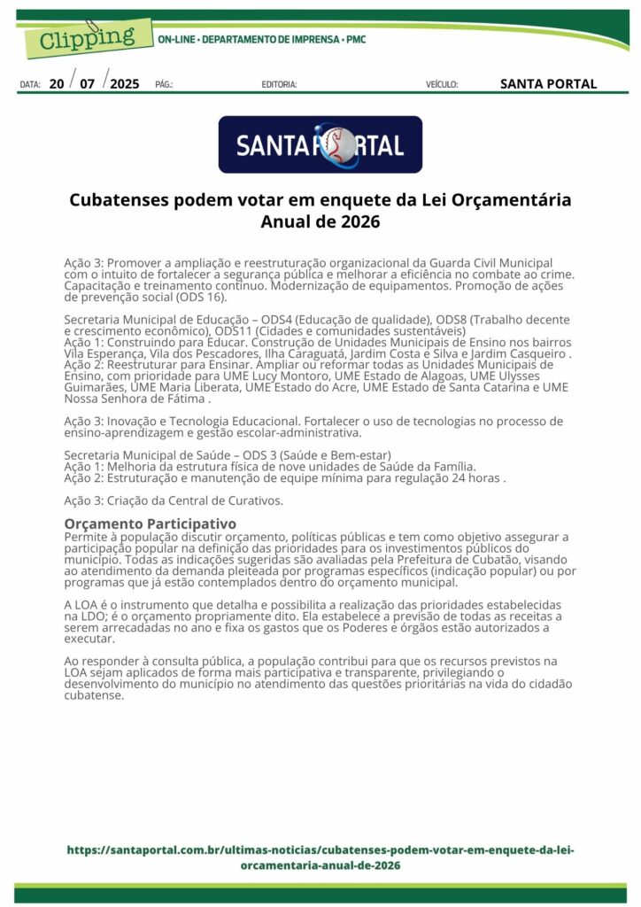 © Copyright Município de Cubatão - Todos os direitos reservados. Desenvolvido por DSJ Soluções Digitais