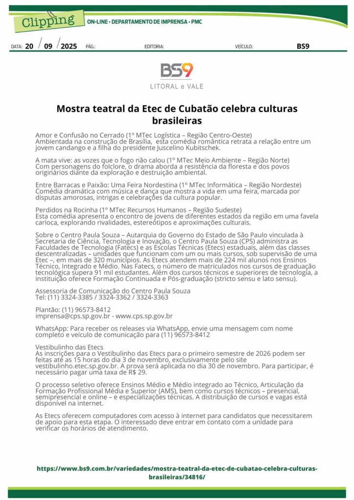 • Praça dos Emancipadores, s/nº - Centro - Cubatão/SP - CEP 11510-900