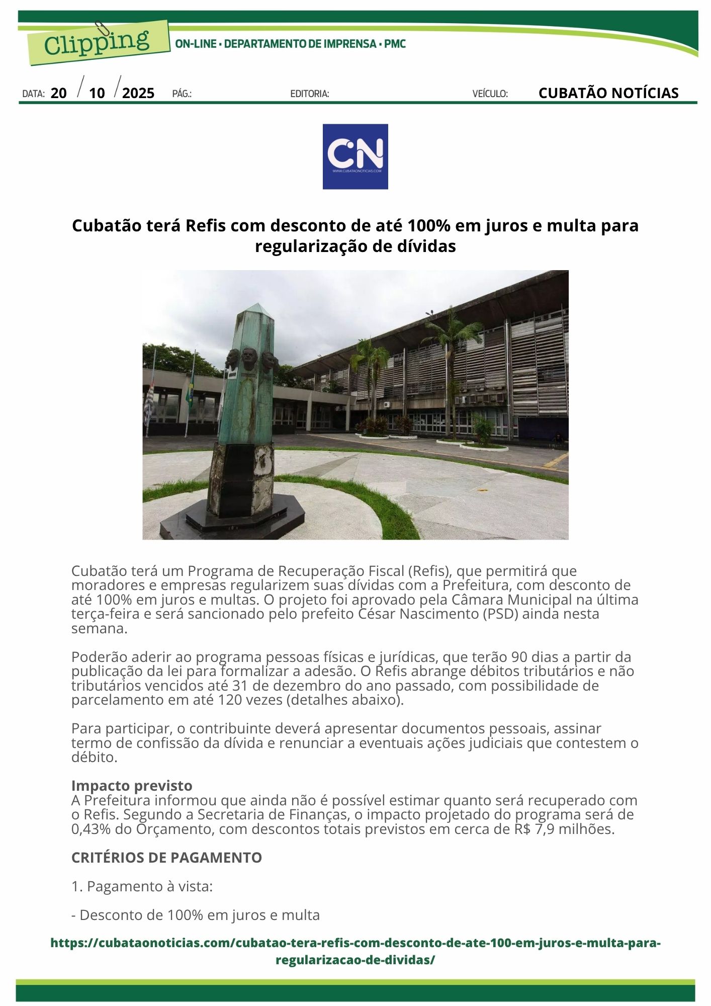 Solicitação de Acesso ao ISS-Web para empresas de Fora de Cubatão