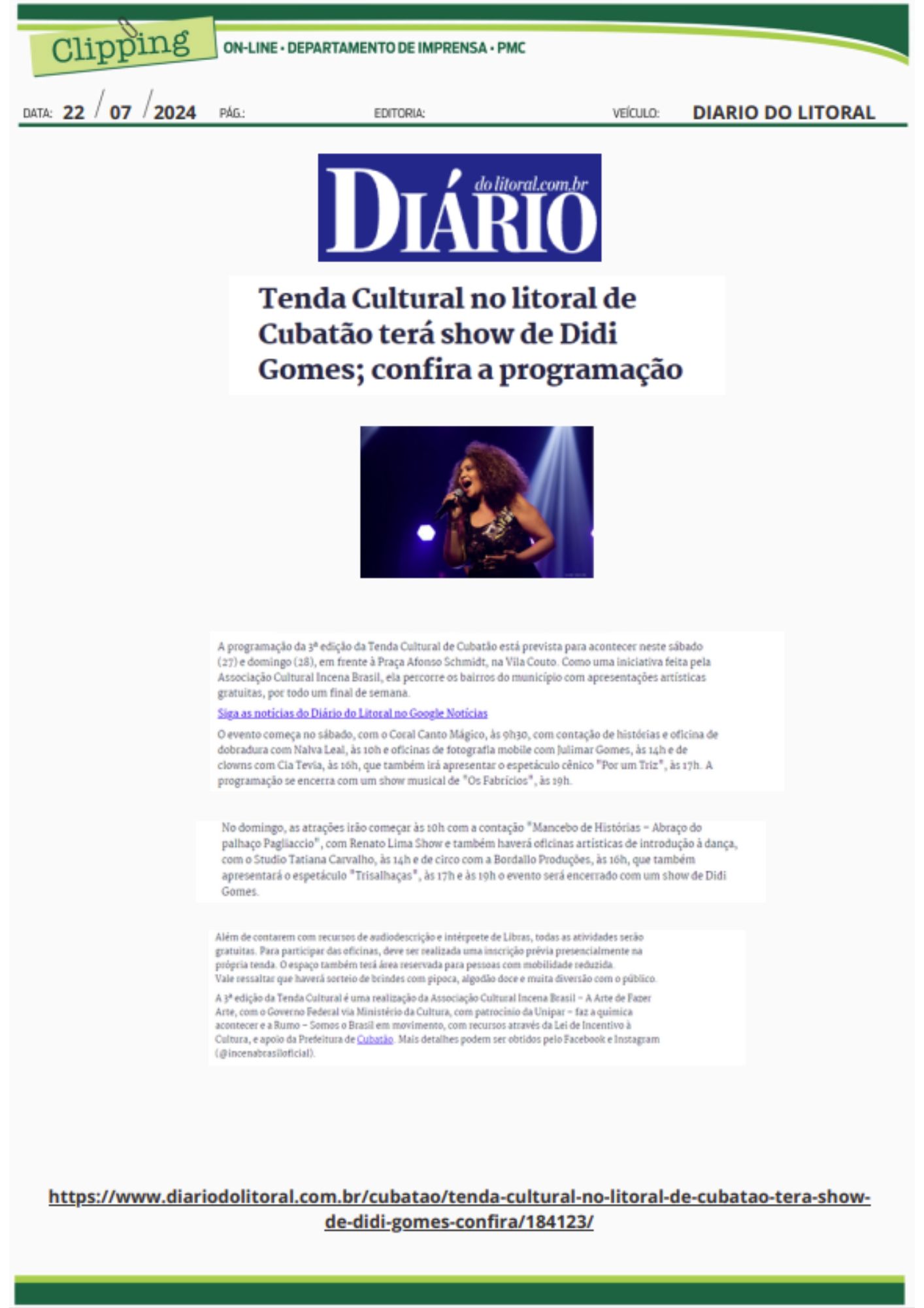 • Praça dos Emancipadores, s/nº - Centro - Cubatão/SP - CEP 11510-900