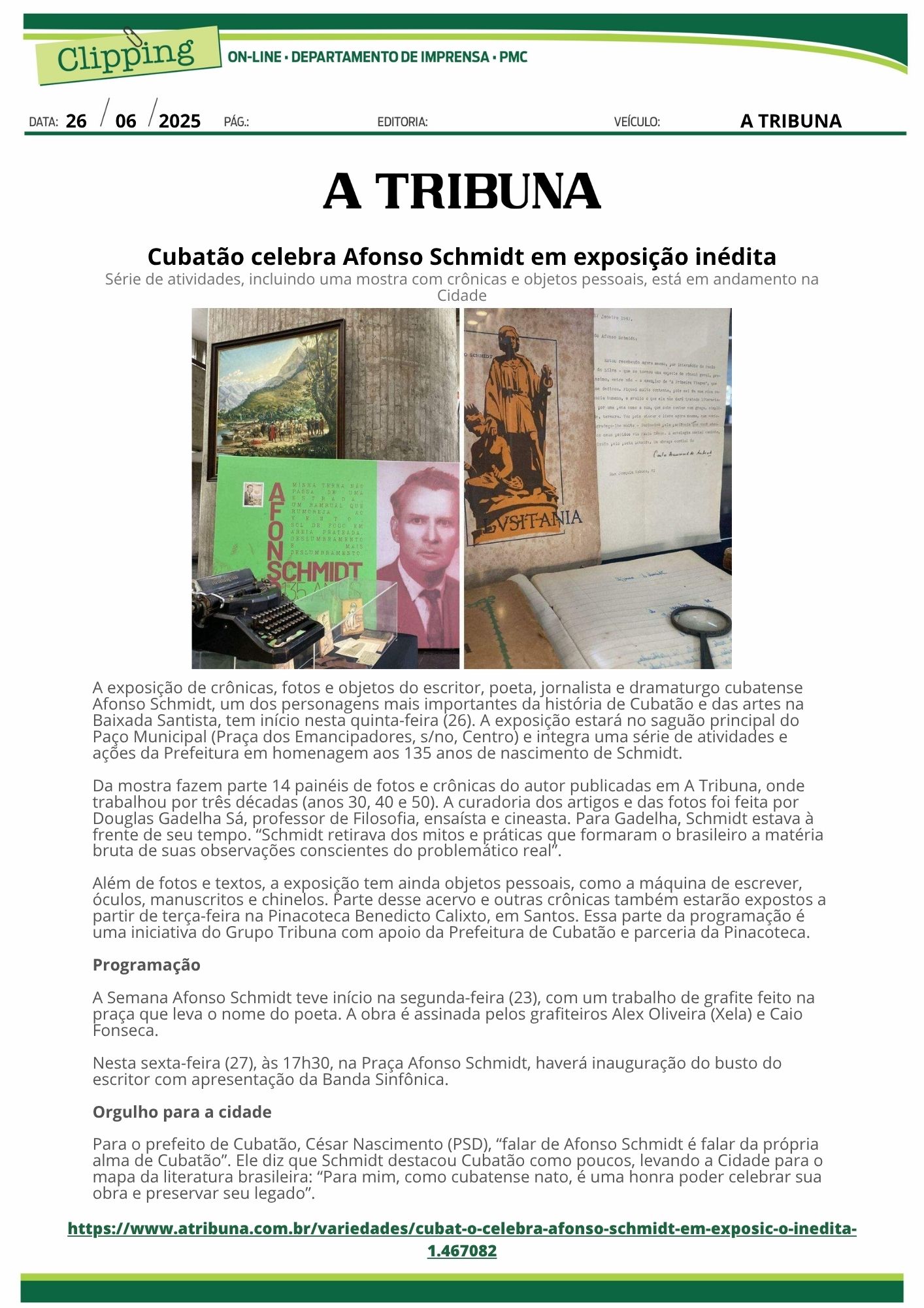 • Praça dos Emancipadores, s/nº - Centro - Cubatão/SP - CEP 11510-900
