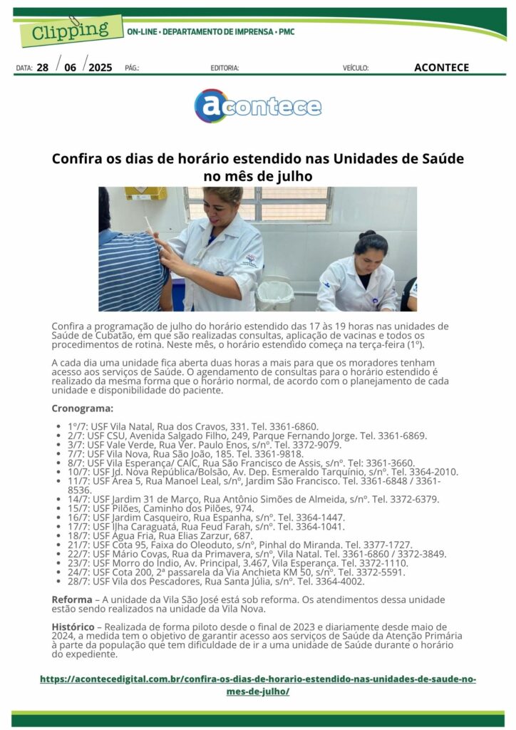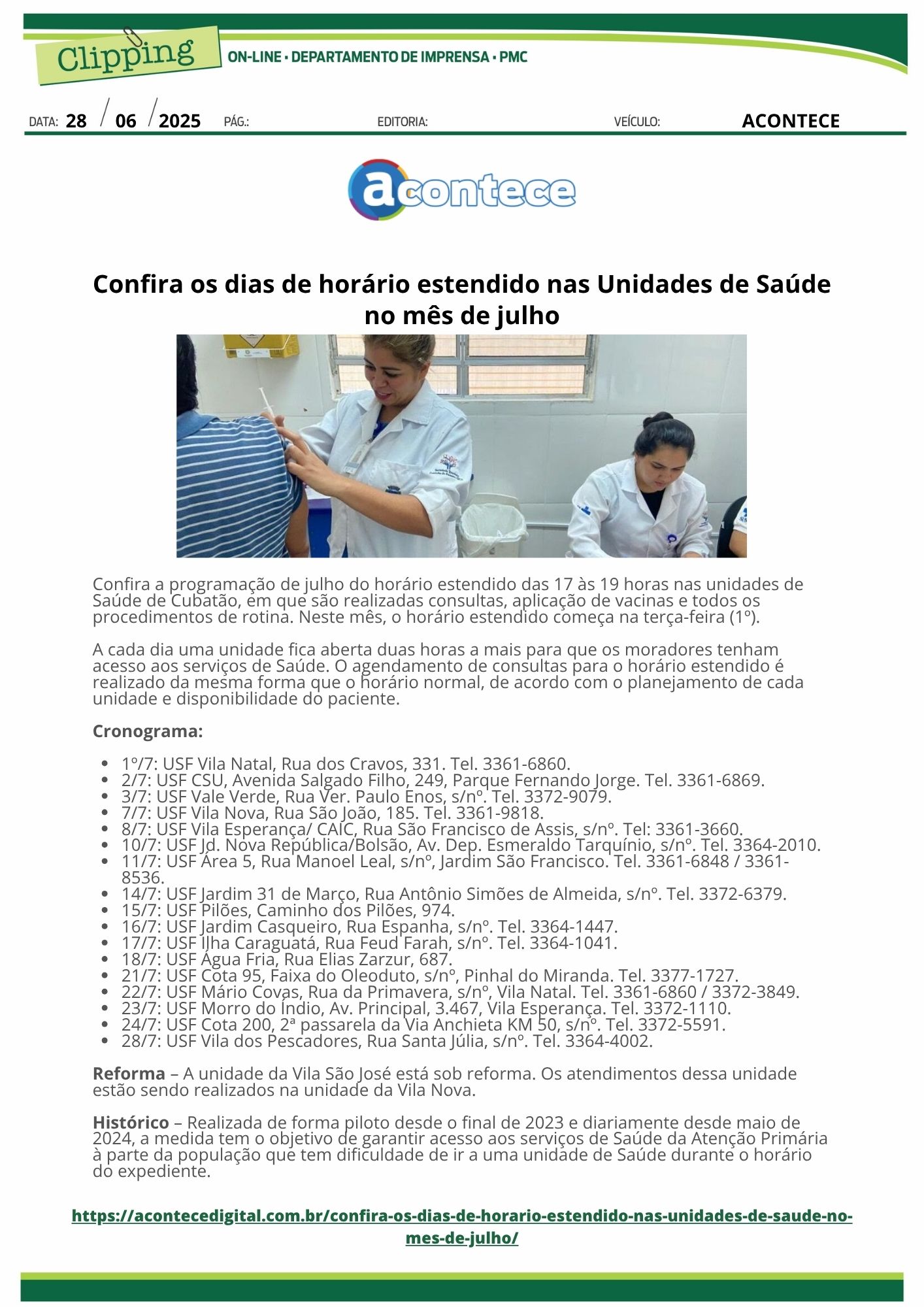 • Atendimento de segunda a sexta-feira das 8 às 17 horas