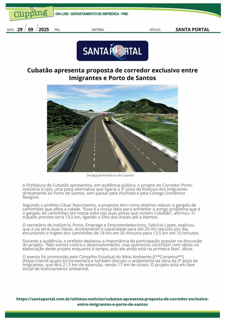 • Praça dos Emancipadores, s/nº - Centro - Cubatão/SP - CEP 11510-900