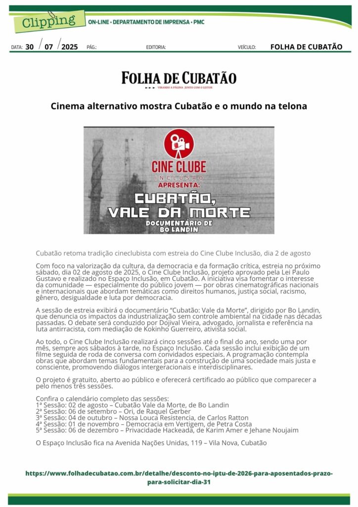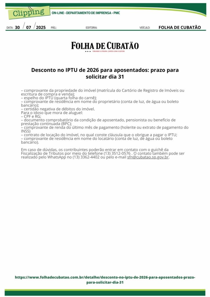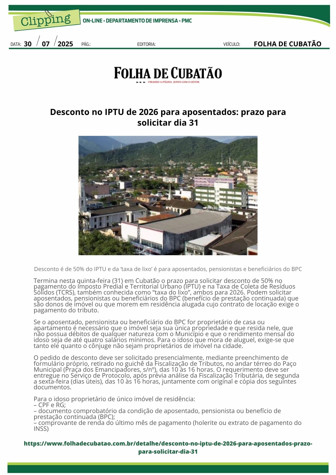 Solicitação de Acesso ao ISS-Web para empresas de Fora de Cubatão