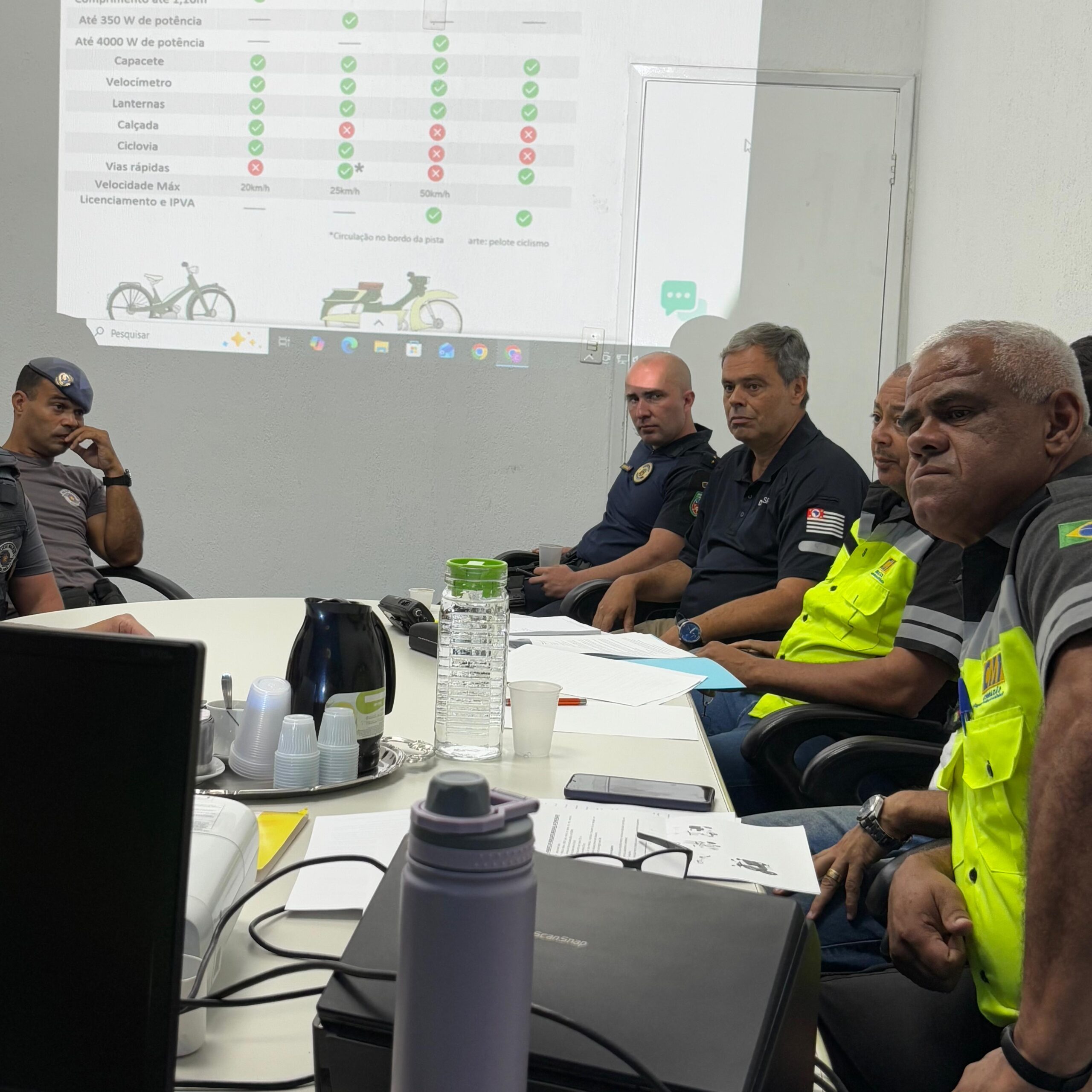 A Companhia Municipal de Trânsito (CMT), a Guarda Civil Municipal de Cubatão (GCMC), o Departamento Estadual de Trânsito (Detran) e a Polícia Militar se reuniram nesta segunda (12) para alinhar a aplicação da Resolução Contran nº 996/2023, que regulamenta a circulação e a fiscalização em Cubatão de ciclomotores, bicicletas elétricas, patinetes elétricos e Equipamentos de Mobilidade Individual Autopropelidos (EMAPs) e bicicletas artesanais (movida a gasolina). As regras estão em vigor desde o início de 2026. O encontro teve como objetivo esclarecer dúvidas sobre a nova legislação, definir diretrizes conjuntas de fiscalização e padronizar procedimentos, diante do aumento da circulação desses veículos na cidade.