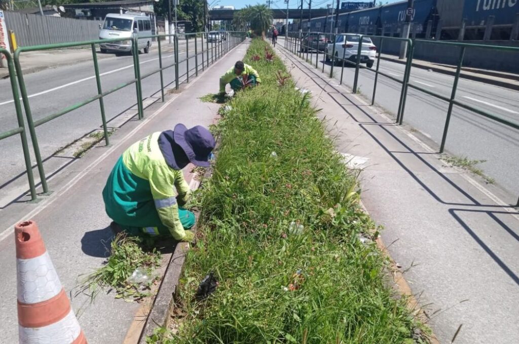 Nesta sexta(24), equipes da limpeza urbana, responsáveis pelos serviços de manutenção dos parques e jardins do município estiveram atuando na ciclovia da Av. Martins Fontes, onde a grama está sendo aparada e com cuidado especial no bucólico jardim, tornando-se, dessa forma, uma passagem cada vez mais agradável. Outra equipe esteve no Bolsão 8, especificamente na Rua Alaíde Soares, fazendo a remoção de uma leucema, planta não-nativa. Ações desta natureza também ocorreram no Bolsão 7, Cota 200 e no Parque Linear da Fabril.