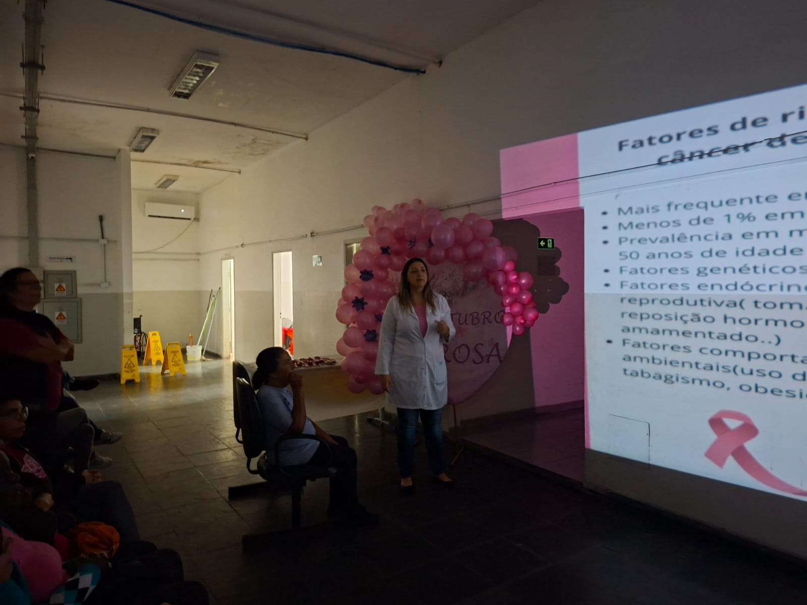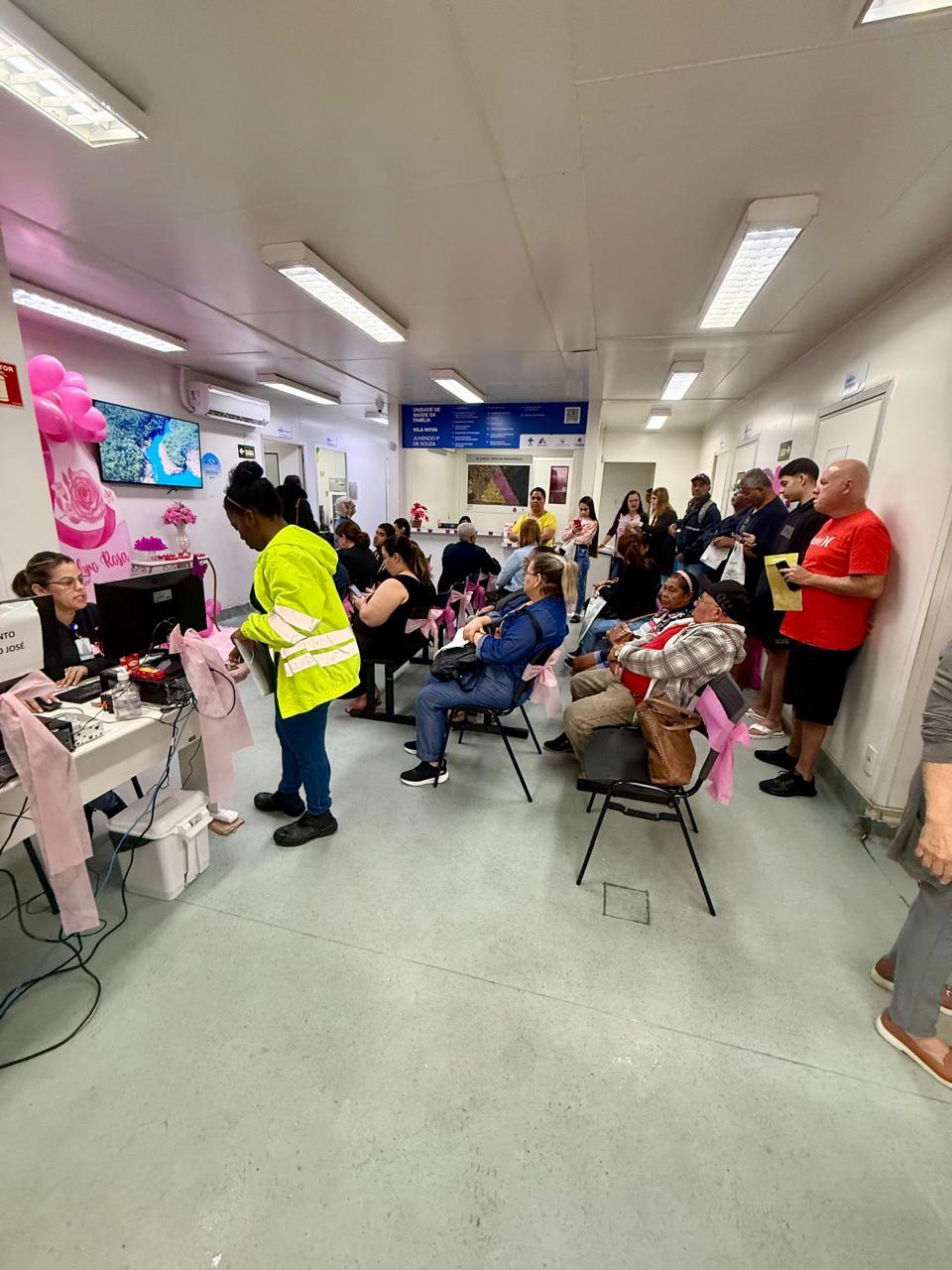 Pela manhã, a Unidade de Saúde da Família (USF) do CSU reuniu mulheres da comunidade para uma conversa com a equipe médica sobre prevenção de câncer de útero seguida por atividade física, mesmo tema da atividade da Unidade Básica de Saúde (UBS) da Vila Nova. Na USF da Ilha Caraguatá, o tema foi “Outubro Rosa com você”.