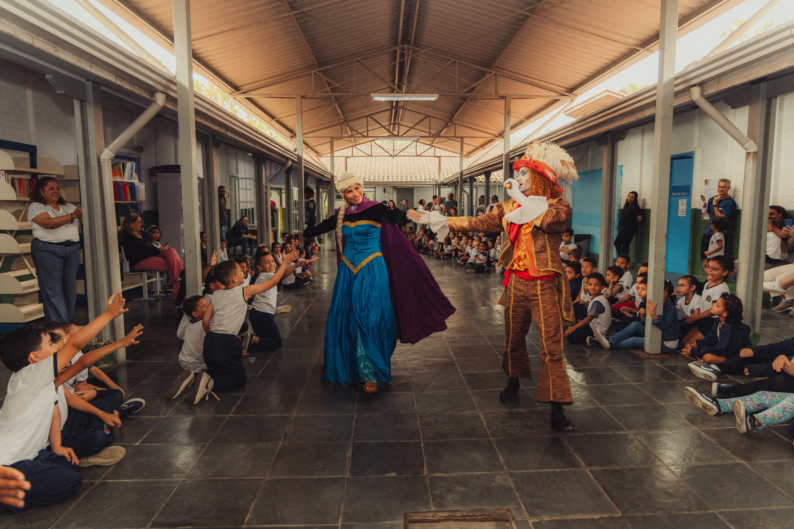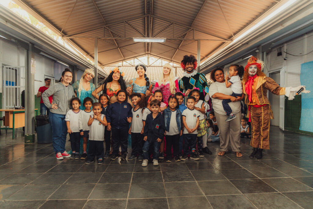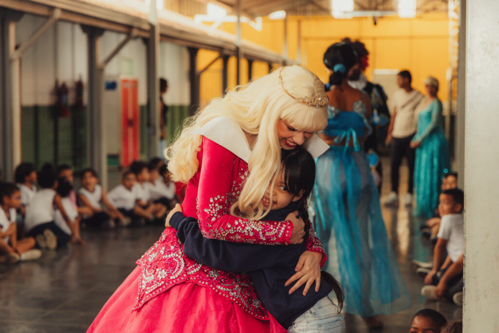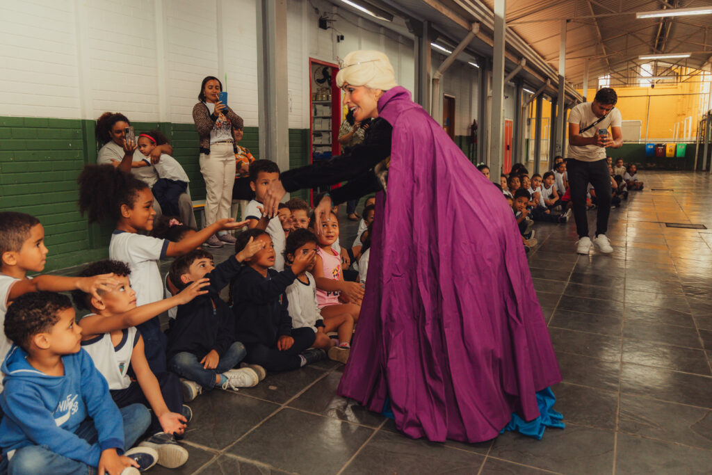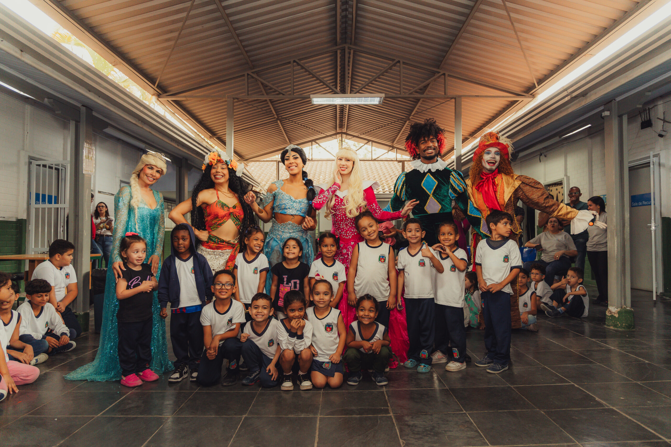 Uma pausa nos estudos para o Chá com as Princesas: Aurora, Elsa, Jasmine, Moana, acompanhadas do Chapeleiro Maluco e do Bobo da Corte. Na manhã desta quinta-feira (2), cerca de 140 crianças do ensino infantil e do 1º e 2º ano do fundamental da UME Elza Silva dos Santos, na Vila Esperança, se divertiram com os personagens infantis da literatura e do cinema, transformando o pátio da escola em um reino encantado. “Eu adorei ver a Aurora”, comentou a pequena Yasmin, de 6 anos.