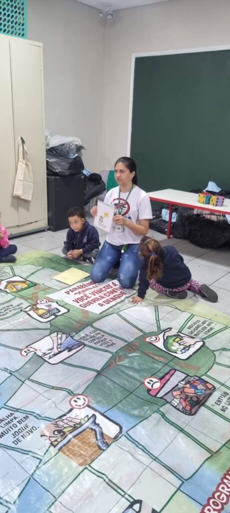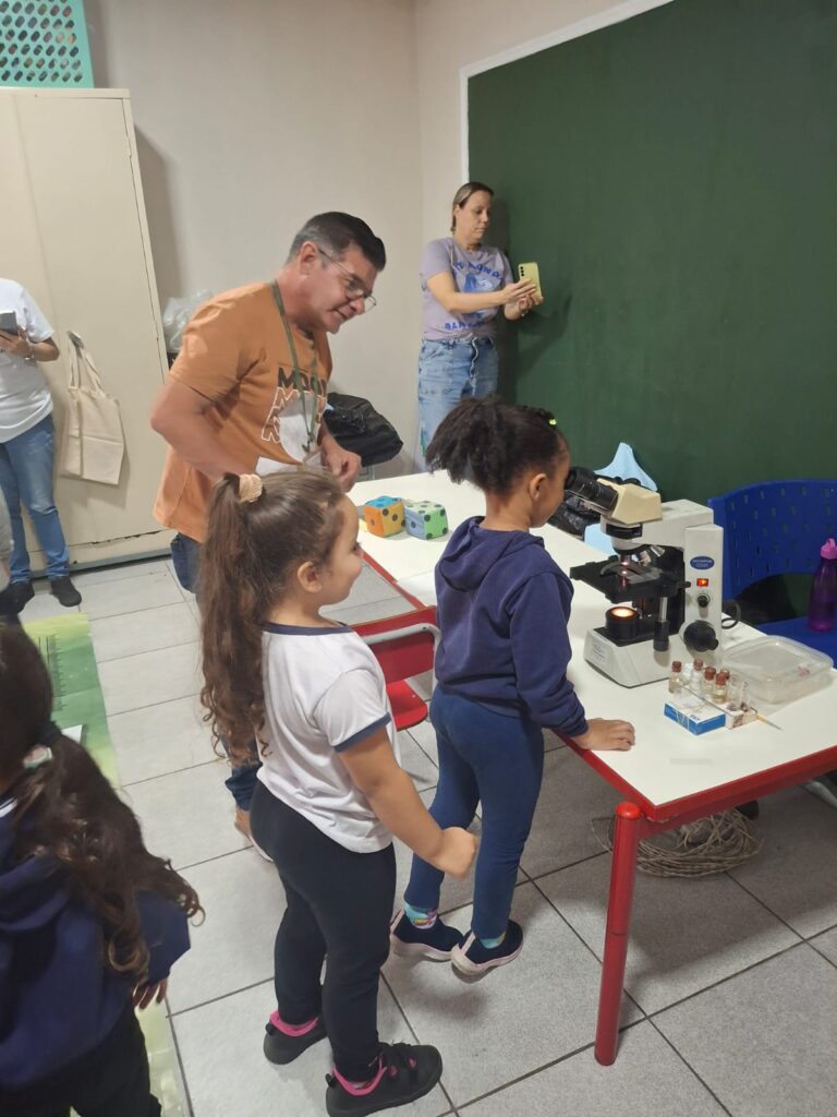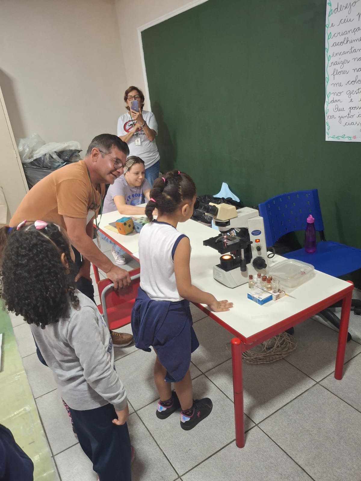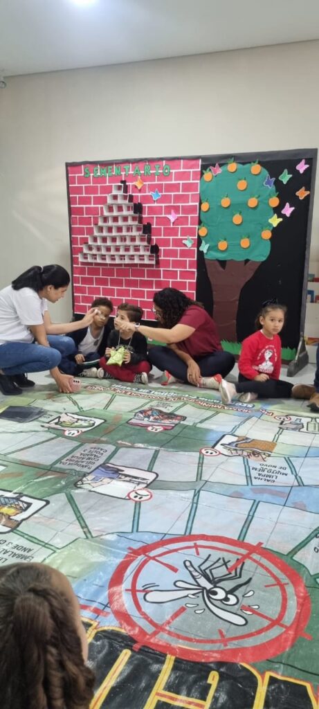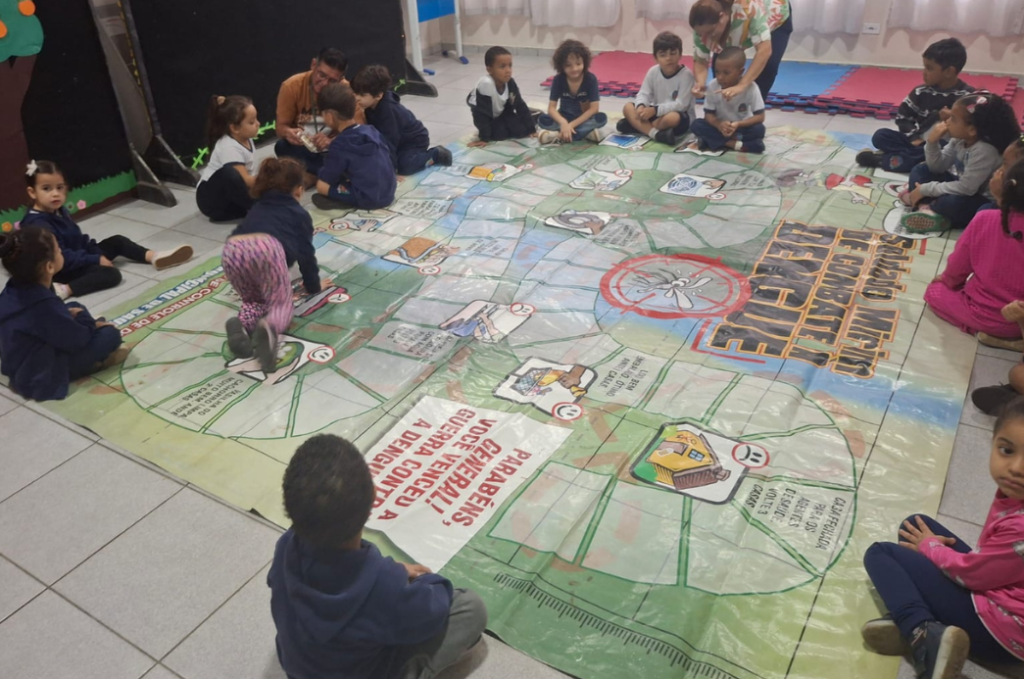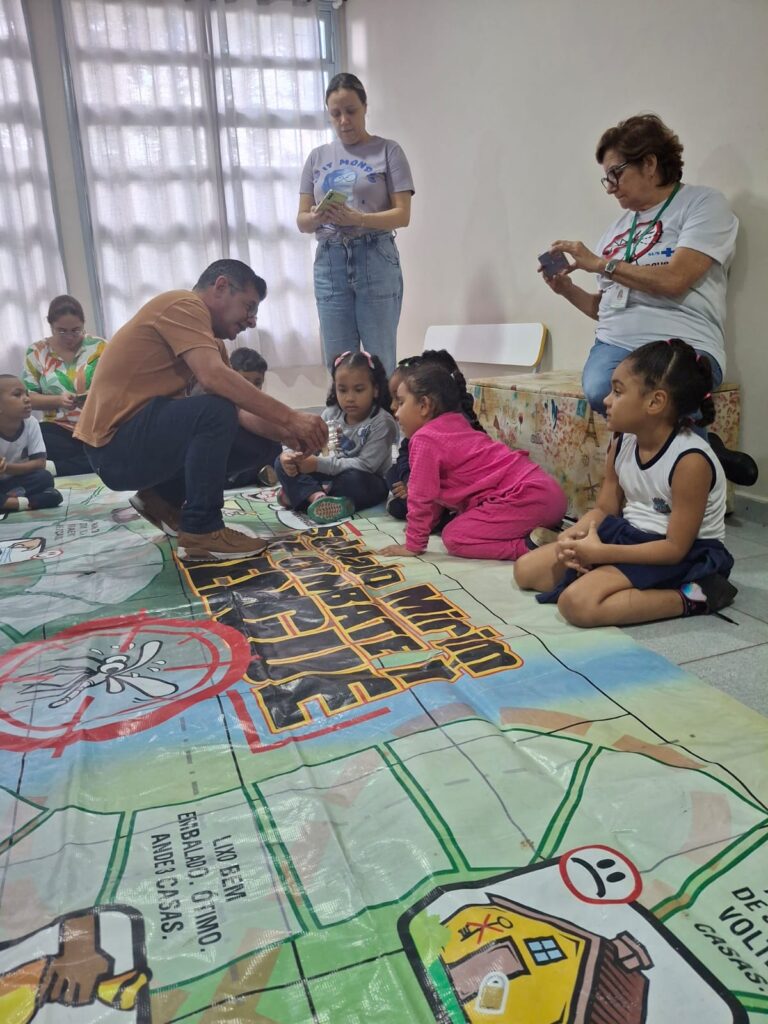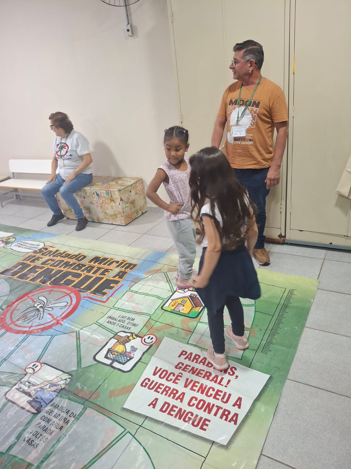 Agentes do Serviço de Controle de Zoonoses de Cubatão estiveram nesta segunda-feira (10) na Unidade Municipal de Ensino (UME) Amazonas, na Vila Nova, para dar início à Semana de Educação em Saúde, com atividades educativas sobre dengue e arboviroses. As crianças participaram do jogo Soldado Mirim de Combate à Dengue em um tabuleiro gigante que ocupa praticamente todo o chão da sala de aula e também tiveram a oportunidade de ver pelo microscópio larvas do mosquito transmissor.