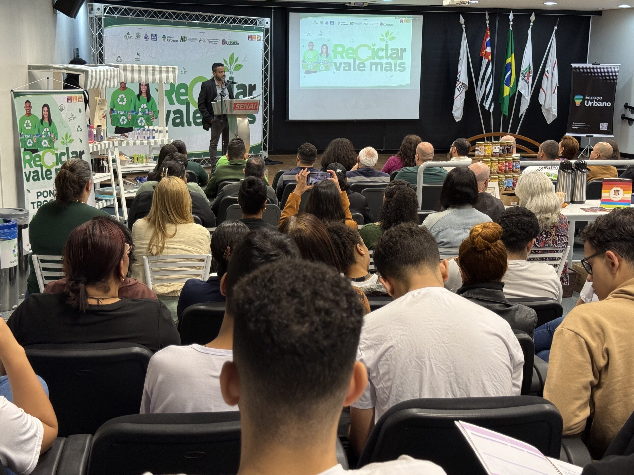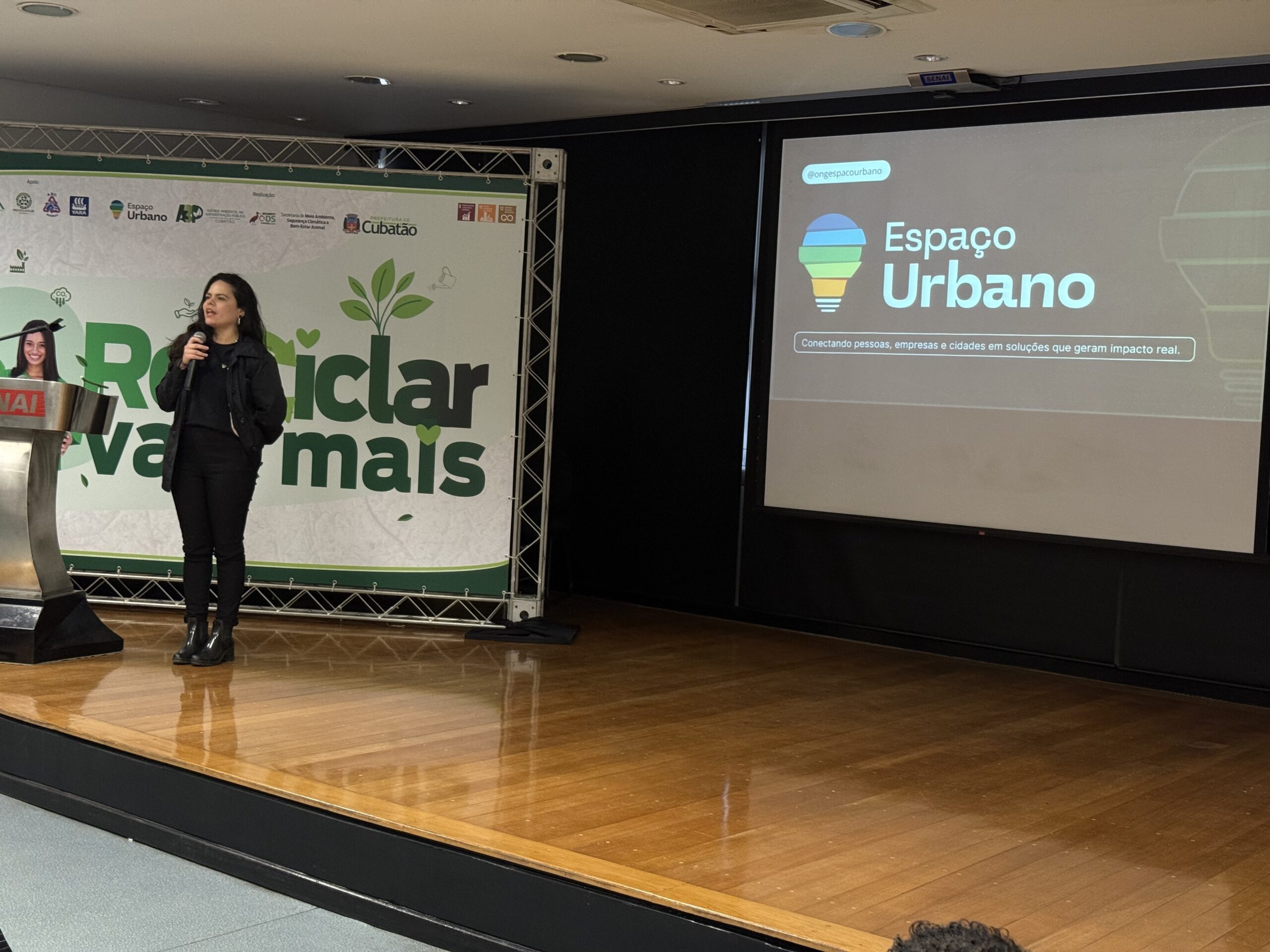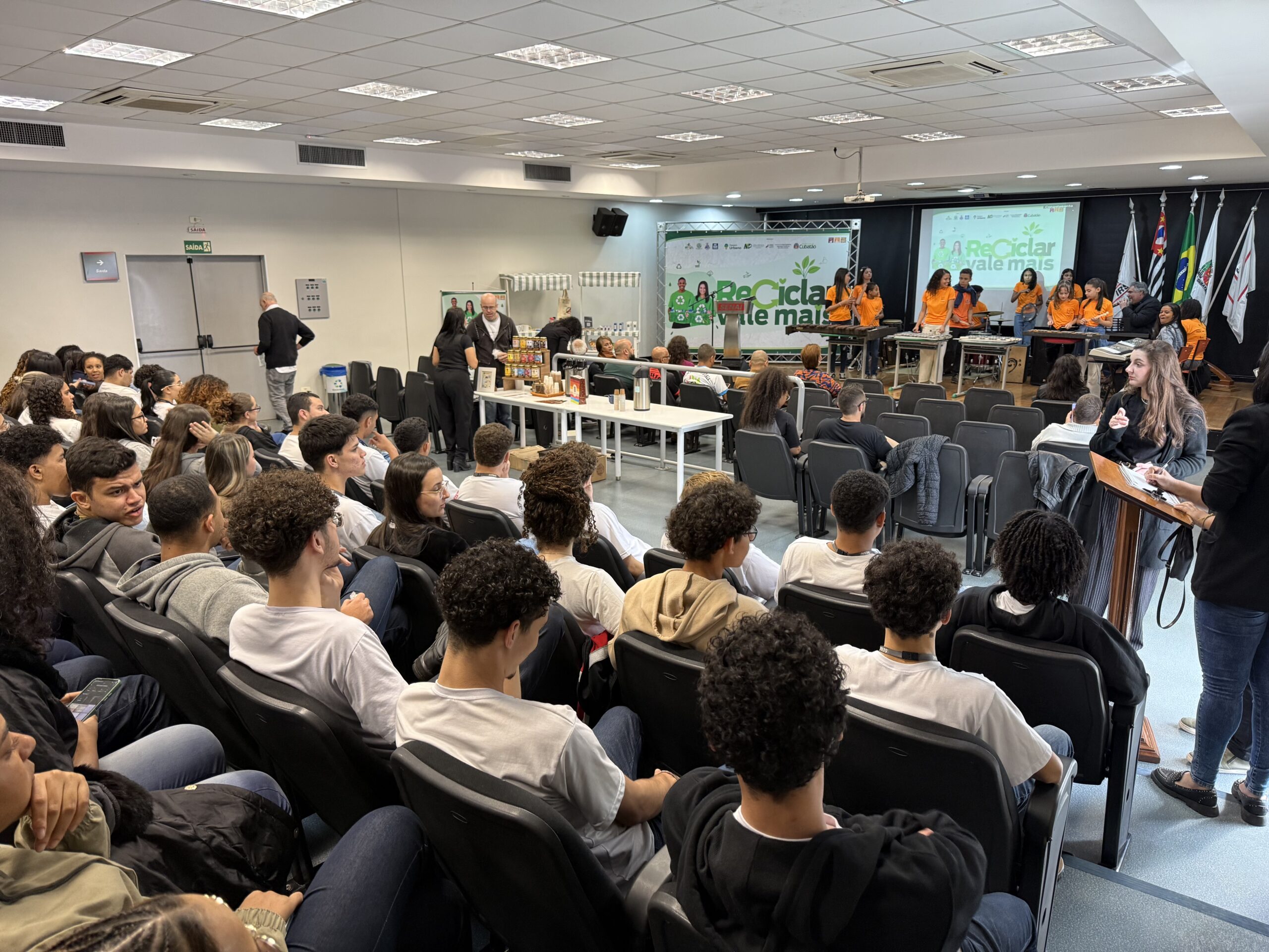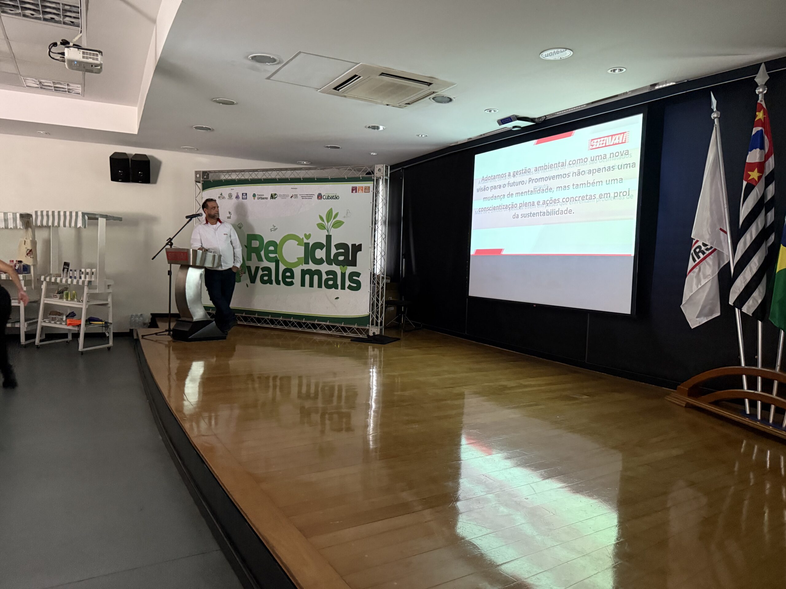 O público ainda pôde acompanhar duas palestras. A primeira foi sobre Gestão de Resíduos/Economia Circular, ministrada pelo professor Lindionete Verderi Rodrigues, Instrutor de Formação Profissional do SENAI-Cubatão, que levou a plateia a refletir sobre a geração de lixo e responsabilidade de cada um nesse sentido. A outra palestra foi conduzida por Daniela Alecrim, Juliana Danezi e Gabriel Macário, representantes da instituição Espaço Urbano — idealizadora da metodologia do programa Recicla Cidade, que já recebeu 14 prêmios nacionais desde sua implementação no país. Os palestrantes apresentaram os fundamentos da metodologia, destacando a importância da articulação com empresas parceiras para ampliar os investimentos no município, bem como os mecanismos de engajamento de diversos setores: poder público, iniciativa privada, cooperativas e sociedade civil.