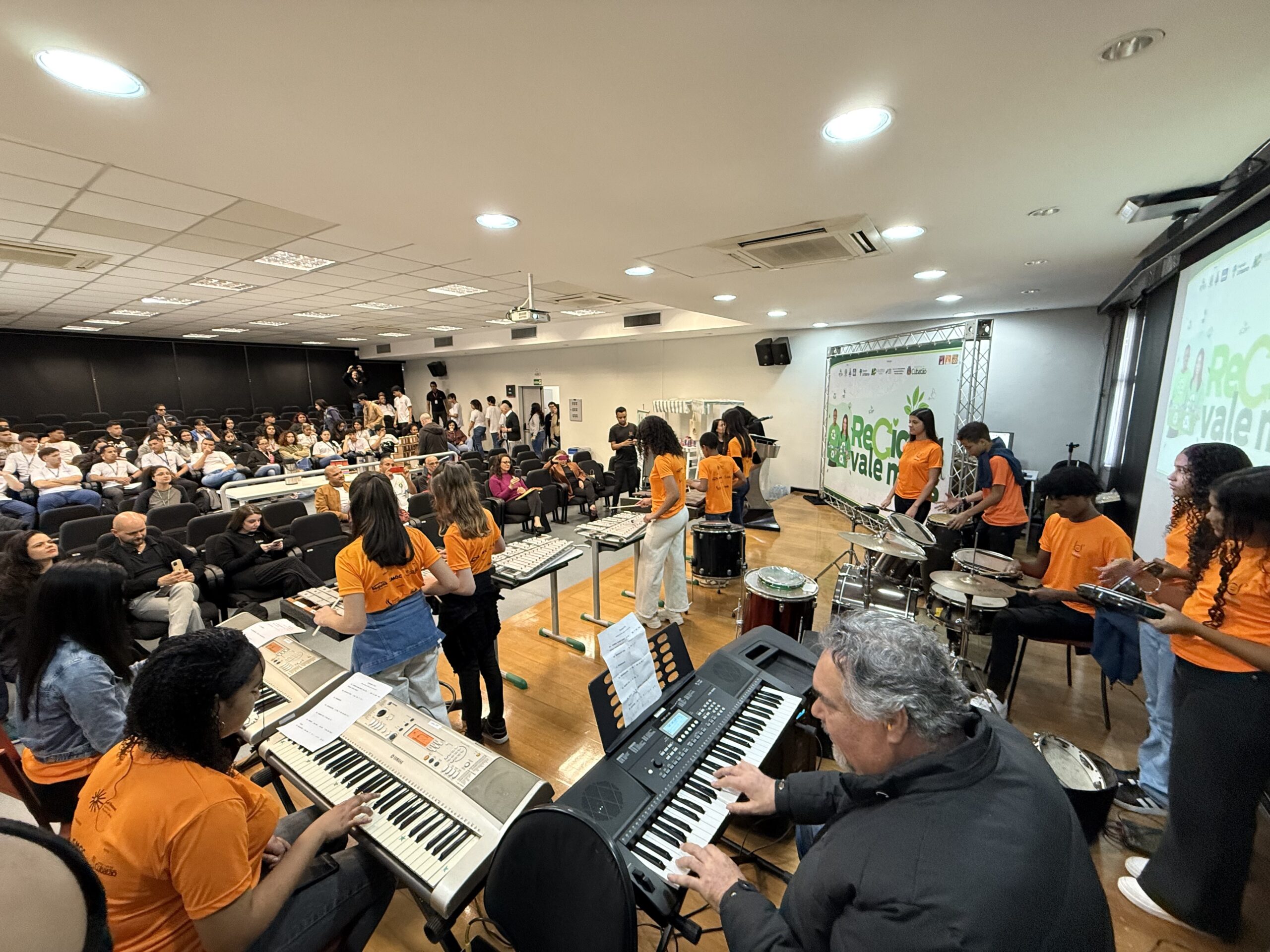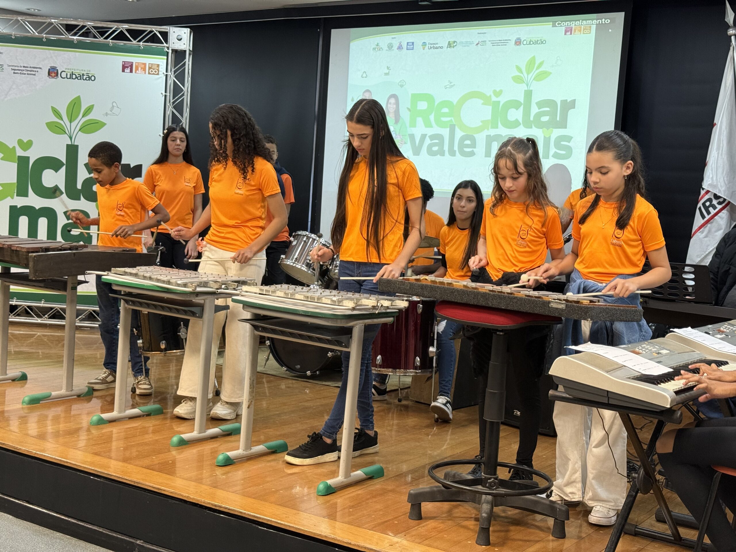 Lançamento – No lançamento do ‘Reciclar’, a plateia foi contemplada com apresentação musical do Programa Cubatão Sinfonia, desenvolvido em diversos bairros da cidade. Cleiton Jordão, secretário de Meio Ambiente, Segurança Climática e Bem-estar animal, agradeceu ao Senai pela concessão do espaço e à equipe da Semam-SCBem pelo empenho. “Ressalto a importância deste momento pela oportunidade de apresentar um projeto com tamanha relevância para o meio ambiente, principalmente com viés de conscientização ambiental inserido, primordial para a economia solidária e circular”, disse.