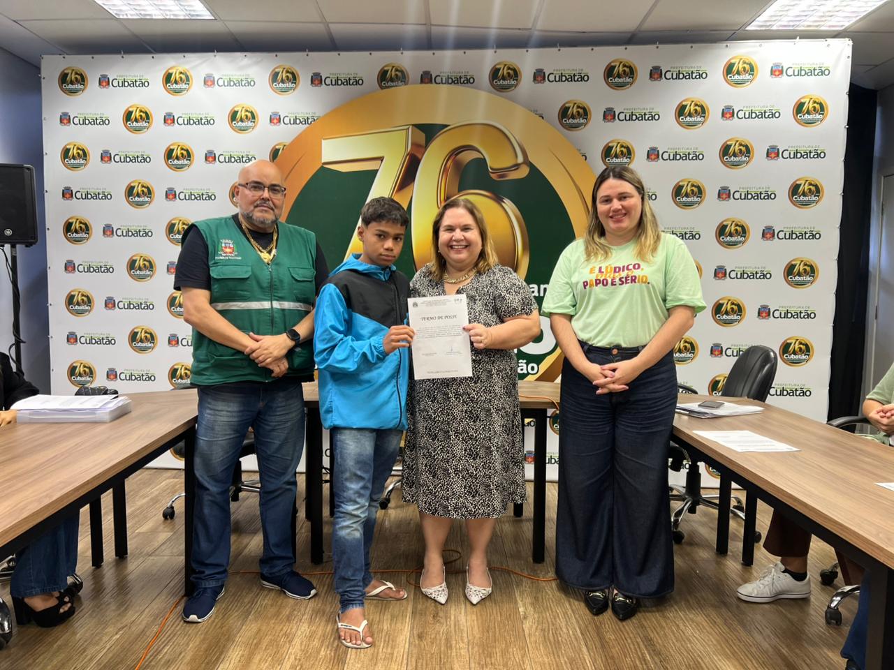 A Prefeitura de Cubatão, por meio da Secretaria de Assistência Social (Semas) e do CMDCA, empossou na tarde desta quarta (15) os membros do Comitê de Participação Adolescente (CPA) para o exercício do direito de expressar suas opiniões e participar ativamente nas discussões e controle das políticas públicas da cidade voltadas ao segmento. O evento de posse ocorreu na Sala de reuniões do Gabinete do Prefeito e contou com a participação da vice-prefeita Andrea Castro representando o prefeito César Nascimento, do titular da Semas, Ivan Hildebrando, e da presidente do Conselho Municipal da Crianças e do Adolescente (CMDCA), Ariela Vaz.