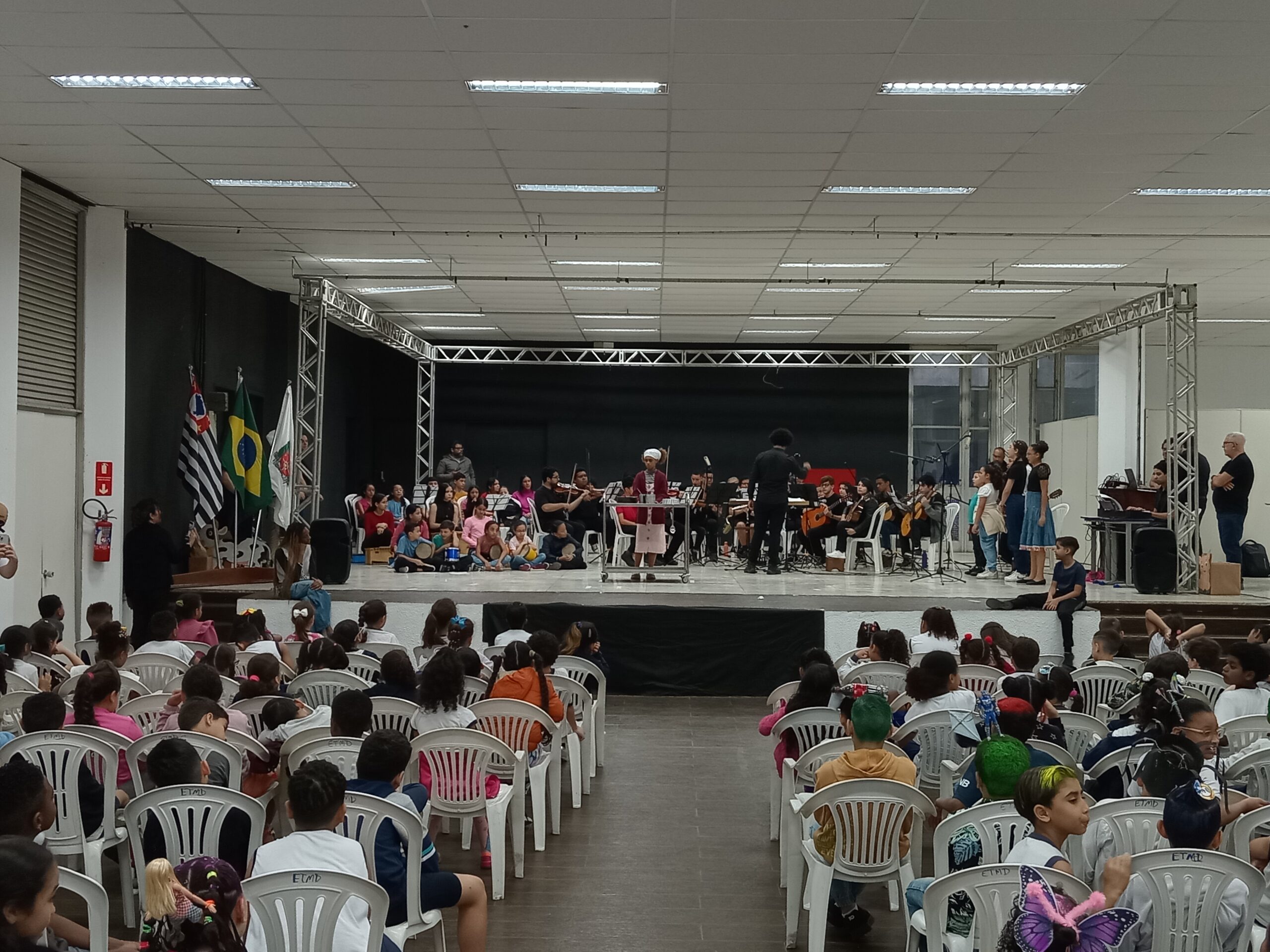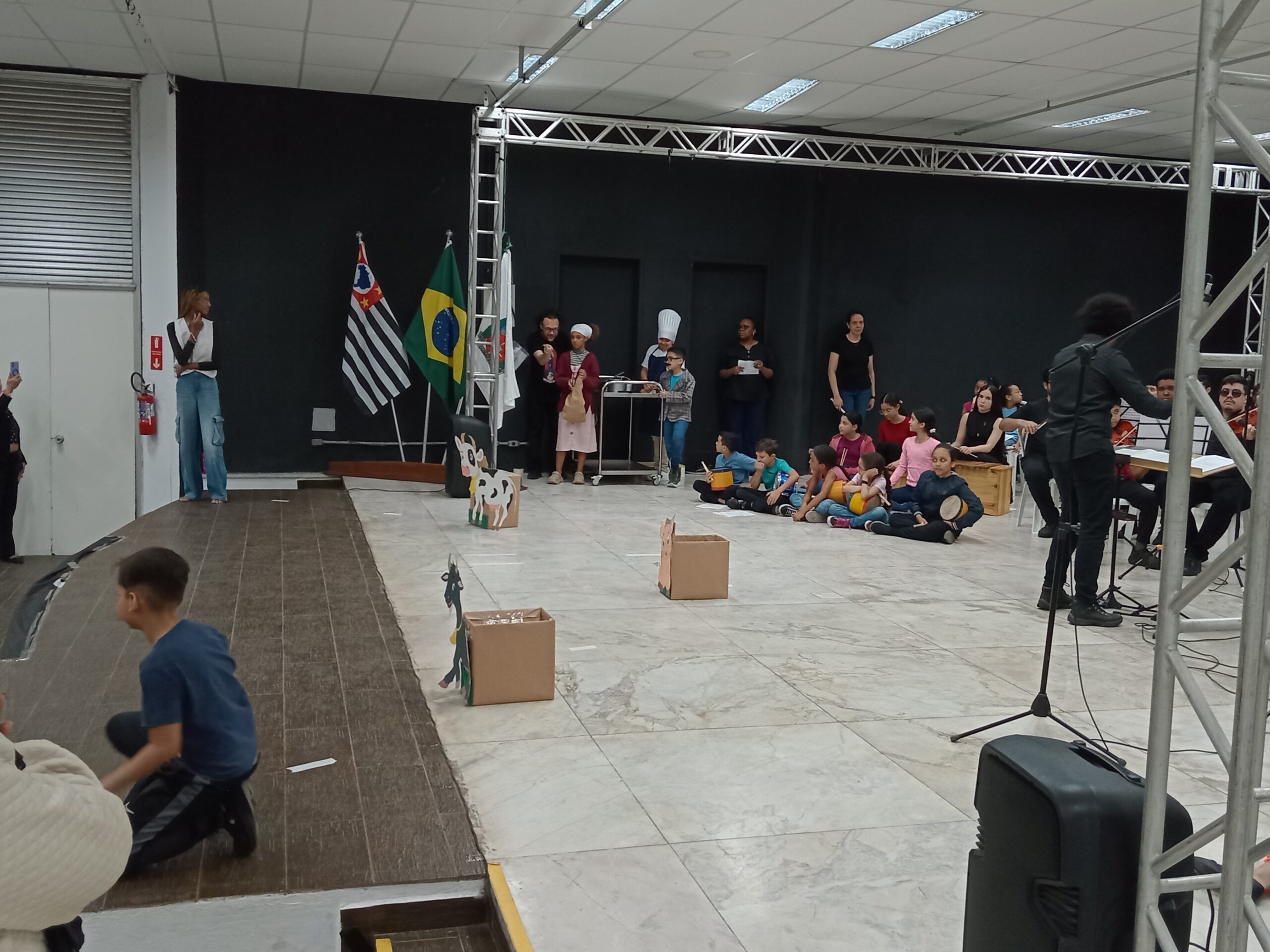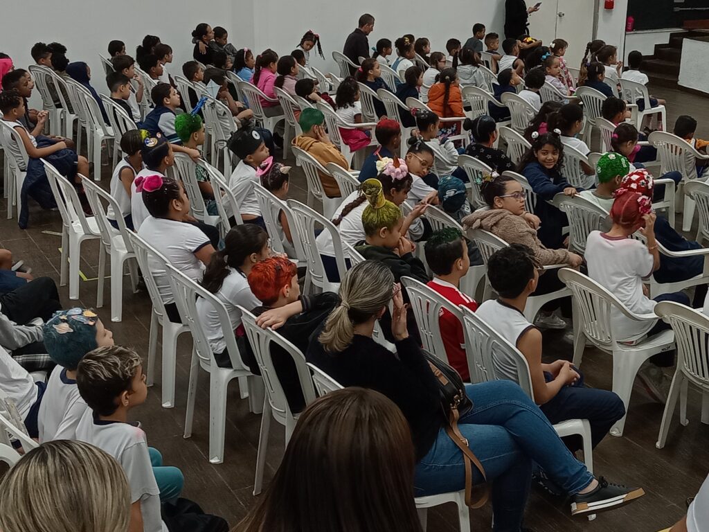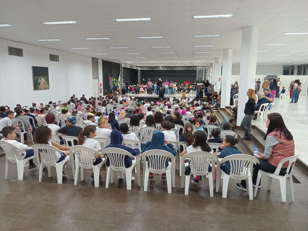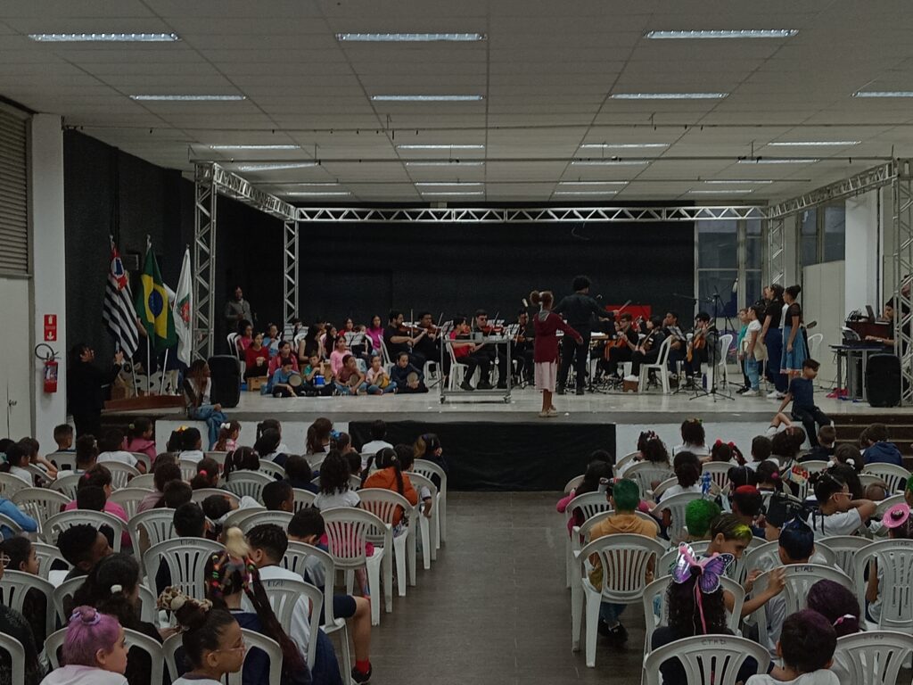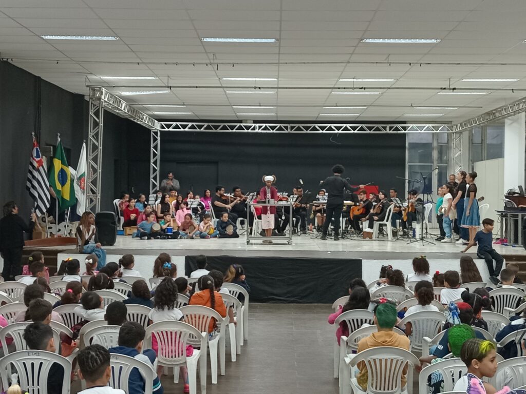 Em celebração à Semana das Crianças, a Escola Técnica de Música e Dança (ETMD) Ivanildo Rebouças da Silva apresentou, nesta sexta (10), o espetáculo “A Dieta de Tia Rhode”, no palco do Bloco Cultural José Edgar da Silva, em Cubatão. Pela manhã, o evento reuniu uma plateia formada por cerca de 250 alunos do Ensino Fundamental I, com idades entre 8 e 11 anos, das escolas municipais Jayme João Olcese, do Jardim Costa e Silva, e Marta Josete – CEU III, do Jardim São Francisco. No período da tarde, foi a vez da Escola Objetivo – Unidades Cento e Ponte Nova que trouxer mais 113 alunos.