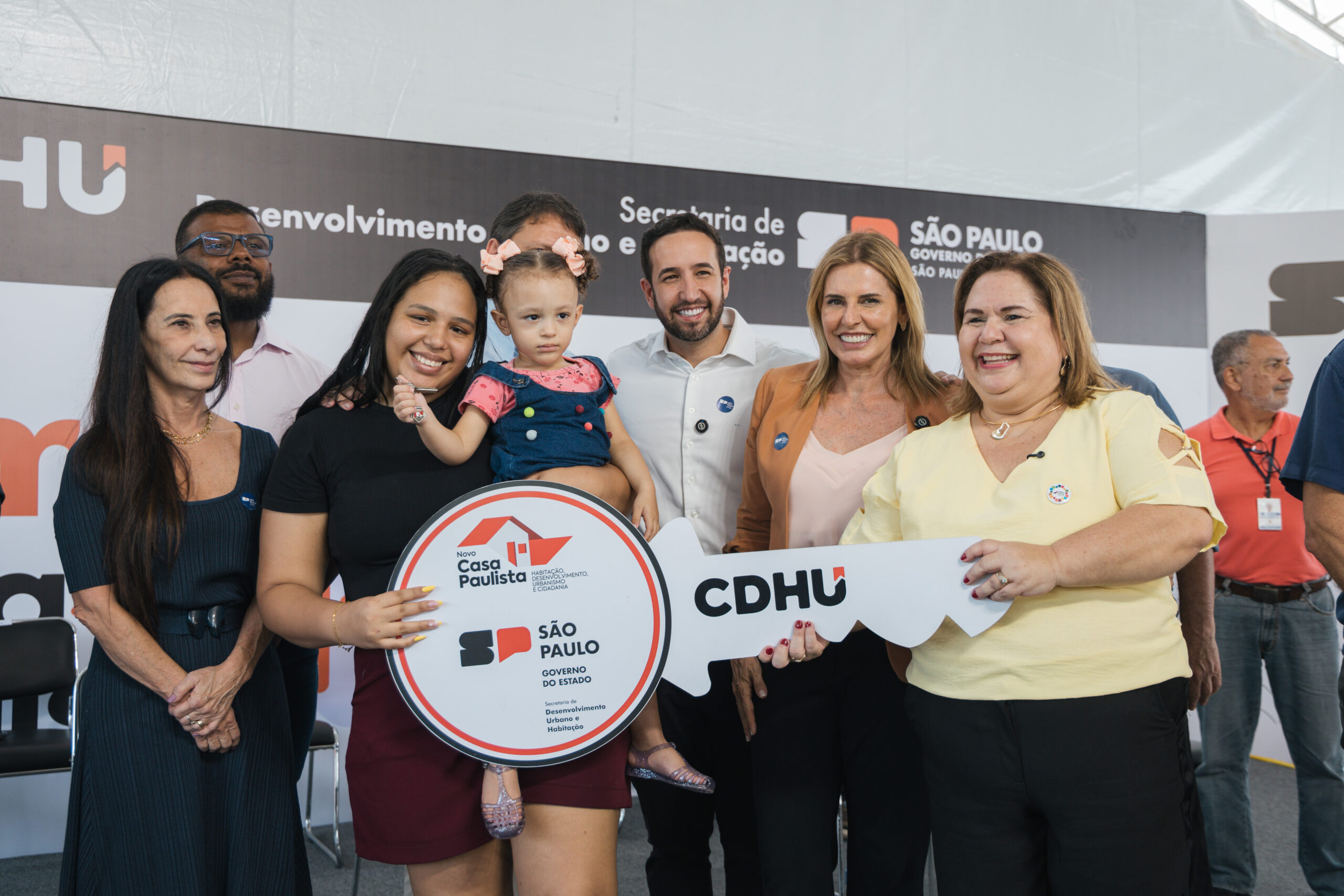 Também participaram da cerimônia os deputados estaduais Tenente Coimbra e Solange Freitas, o deputado federal Delegado da Cunha, além das equipes da Secretaria de Estadual de Habitação (CDHU), secretários municipais, o presidente da Câmara de Cubatão Alexandre Mendes da Silva (o Topete), entre outros vereadores e autoridades cubatenses. Em seguida, a CDHU realizou a entrega simbólica das chaves a seis famílias e prosseguiu com o sorteio das unidades. Primeiro a ser contemplado, o casal Jailton Pereira da Silva e Márcia Dias Franco. “Vamos morar em lugar com mais conforto, estrutura e mais acesso a comércio e transporte”, comemorou o casal, entendendo como o começo de uma nova vida para a família.