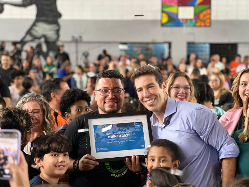 A Escola ‘Parque dos Sonhos’ do Município de Cubatão foi a vencedora do Prêmio Melhor Escola do Mundo (World ‘s Best School Prizes) 2025. A referida Unidade de Ensino da rede estadual concorreu na categoria “Superação de Adversidades”, com um projeto que oferece atividades centradas no aluno, adicionada a ações complementares esportivas. O prefeito César Nascimento, a vice-prefeita Andrea Castro e parte do seu secretariado participaram do evento, cuja premiação foi organizada pela plataforma ‘Internacional T4 Education’, que reconhece iniciativas transformadoras nas comunidades escolares. Entre outros benefícios, a unidade cubatense zerou casos de vandalismo e ampliou a busca por matrículas na casa dos 500%. Atualmente, a unidade possui cerca de 580 alunos do 1º ao 9º anos. O secretário de Estado da Educação, Renato Feder, participou do momento muito comemorado pela confirmação do prêmio.