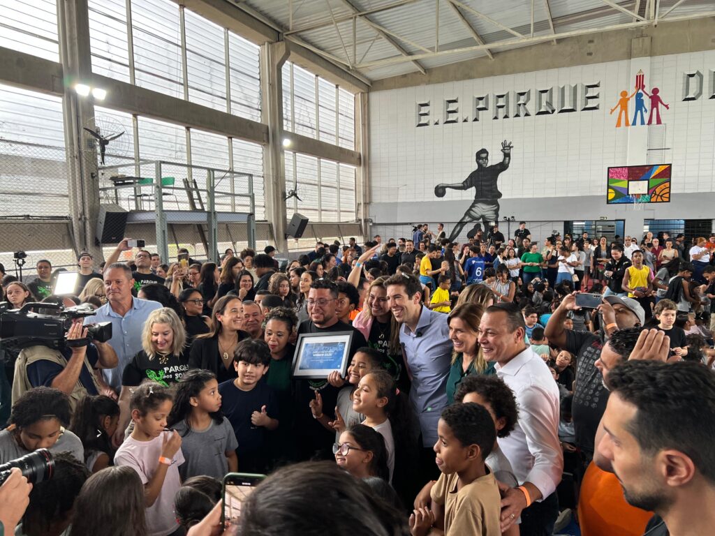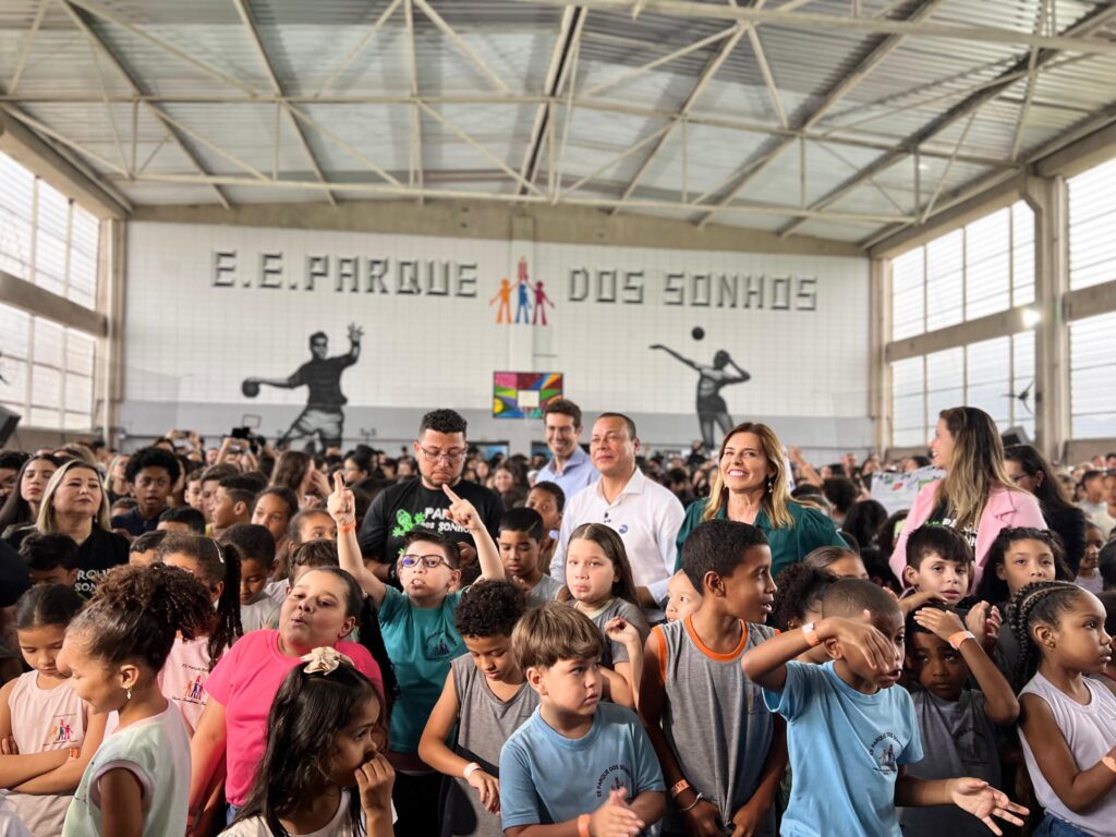 Representante do Estado – “Este momento aqui traz sentido à vida. Não tenho palavras para traduzir a felicidade estampada no rosto de todos vocês e eu não me excluo disso, também estou muito contente por esse momento da Educação do Estado de São Paulo, tendo uma unidade em Cubatão que é exemplo não só do Brasil, mas do mundo. Muito gratificante e histórico para todos nós”, expressou Renato Feder, secretário de Estado da Educação, que aproveitou para anunciar que a escola vai receber aparelhos de ar-condicionado e que, além do ensino fundamental (até o 9º ano), passará a oferecer ensino médio a partir de 2026, garantindo a permanência dos alunos para sequência escolar.