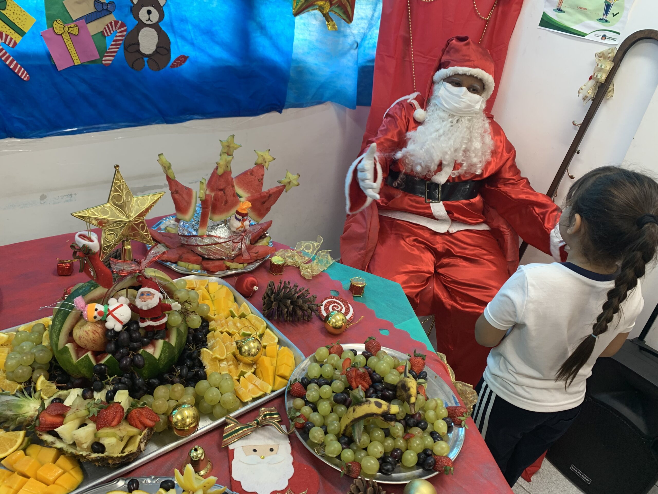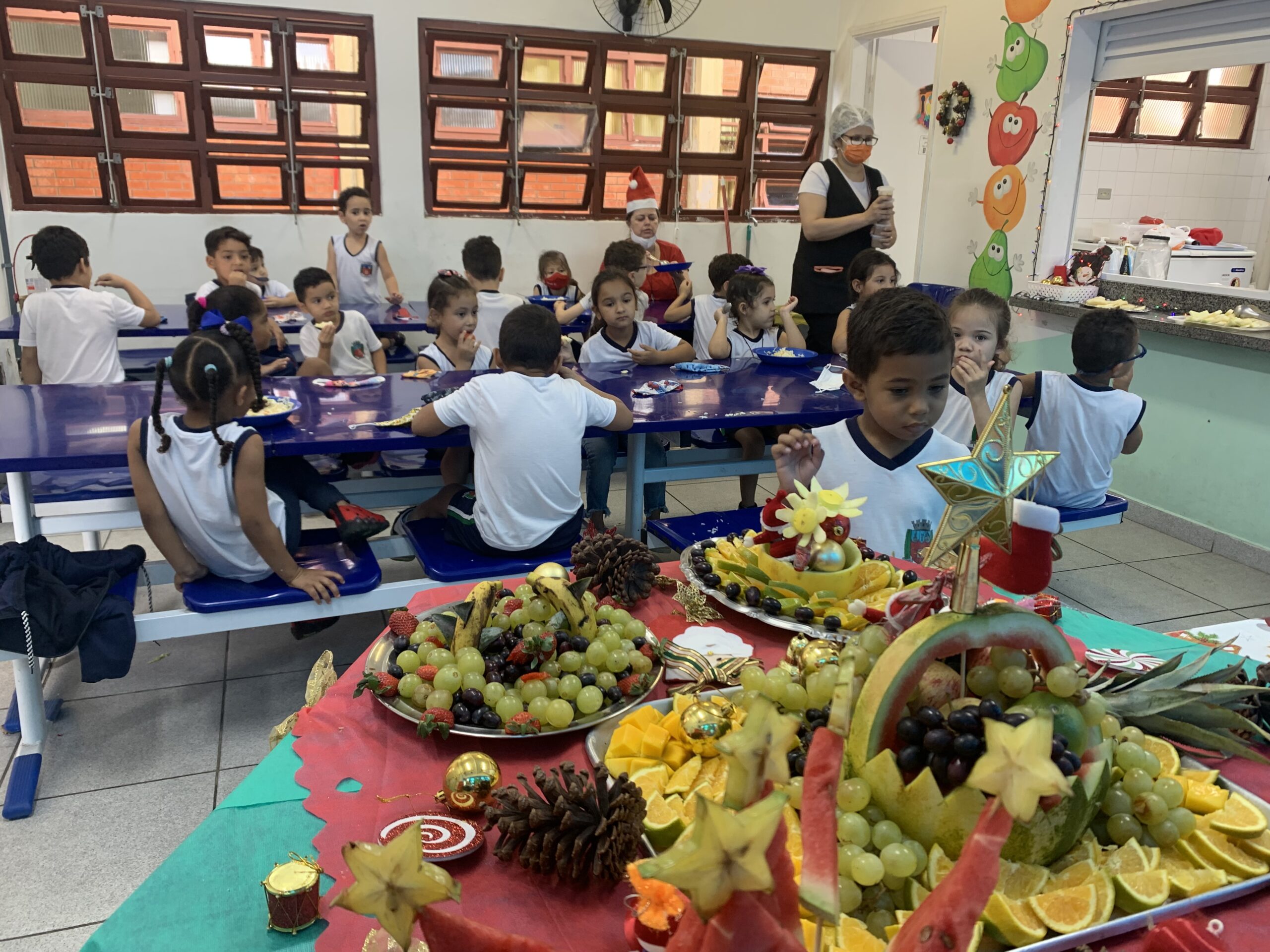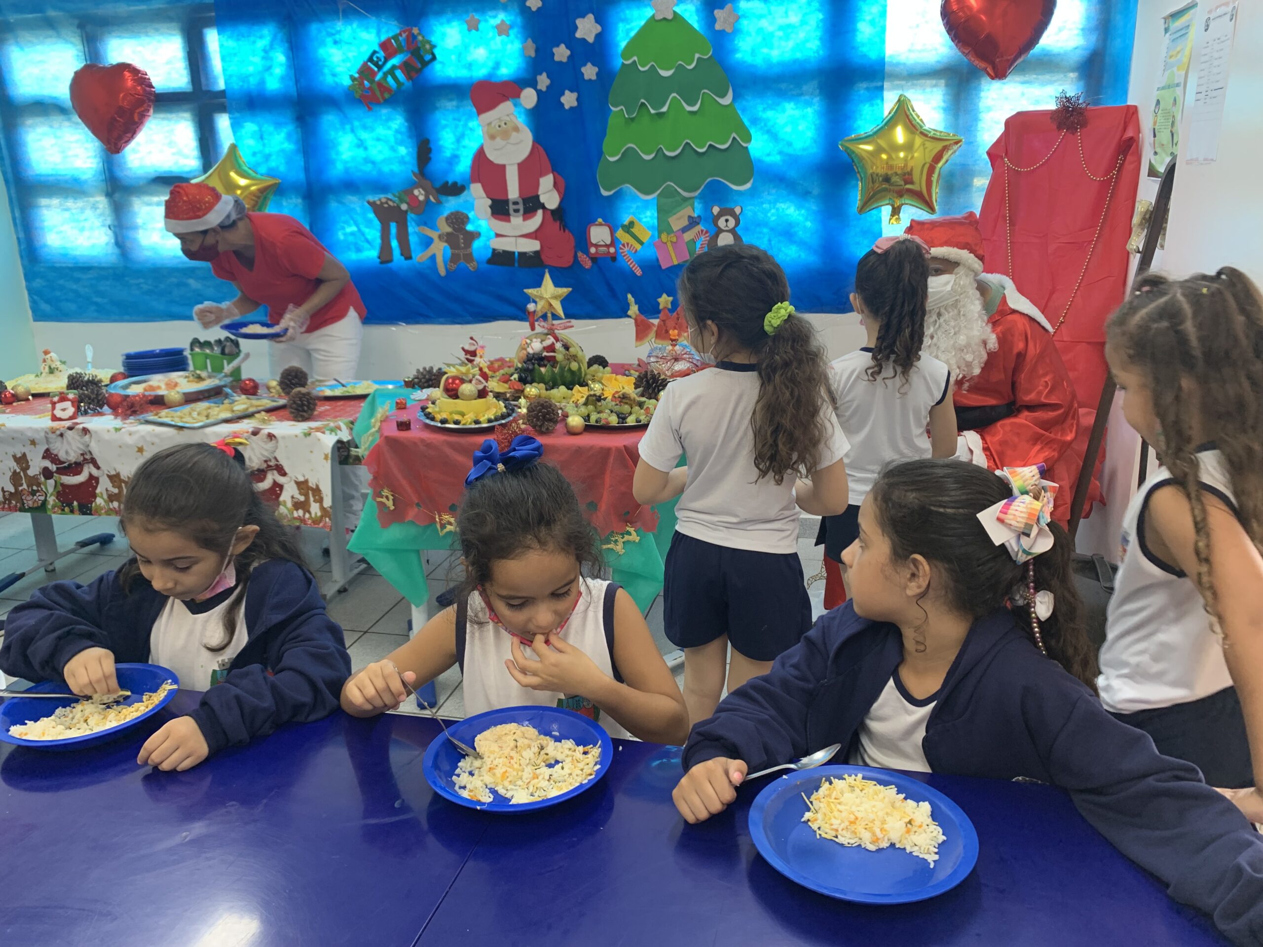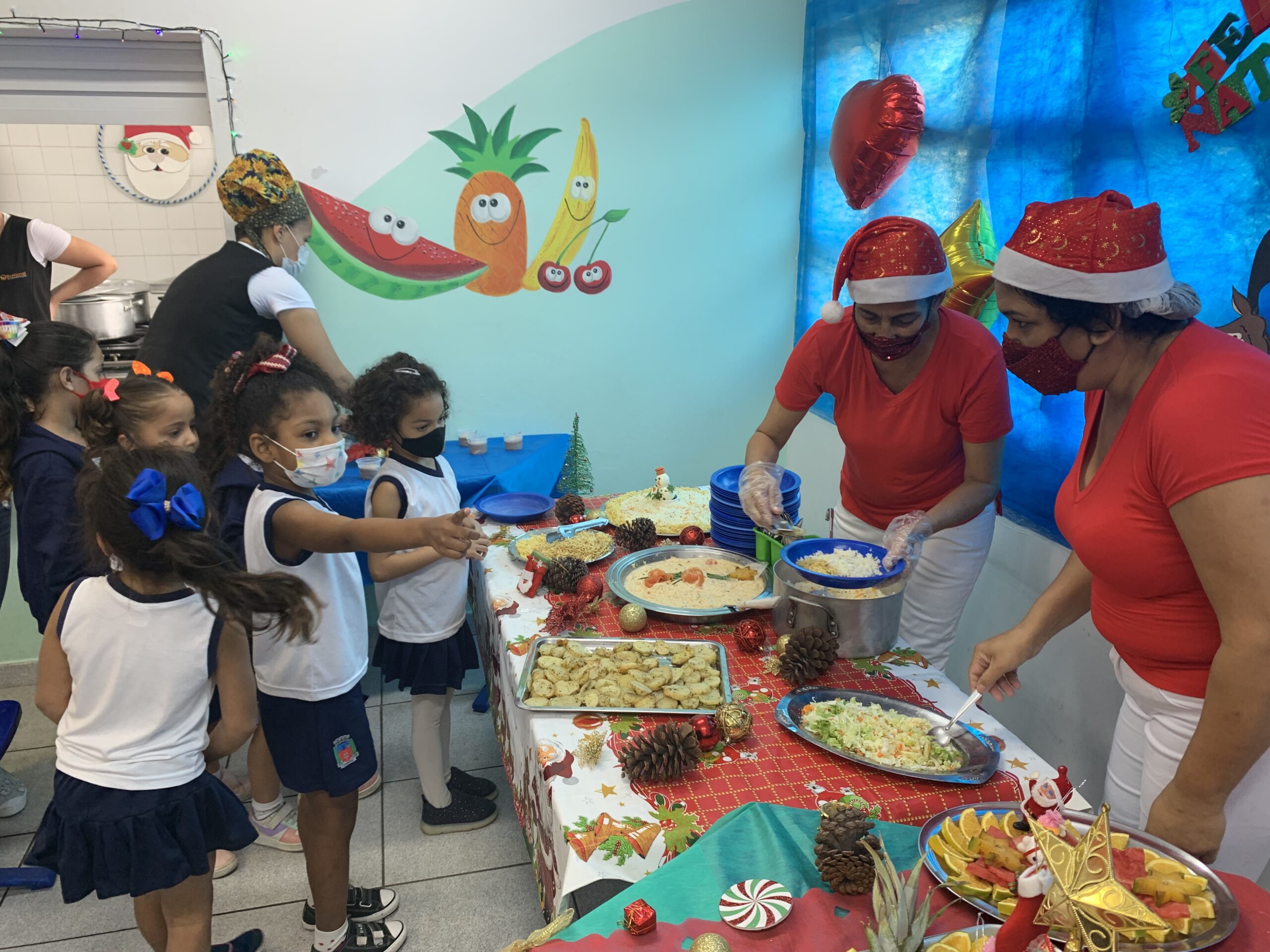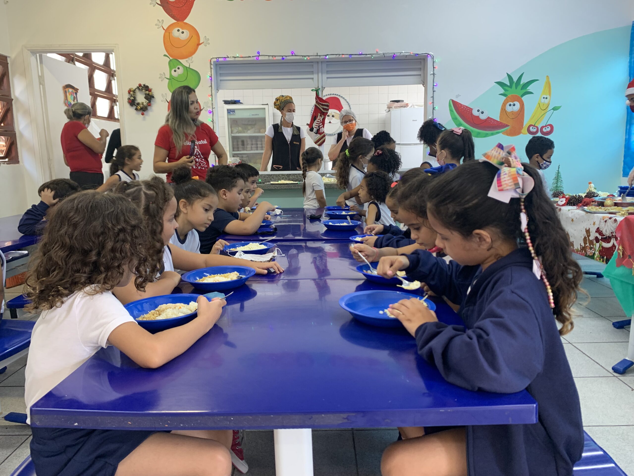Cardápio caprichado – A diretora do UME Minas Gerais, Priscila Silva, afirma que o cardápio teve uma boa aceitação por parte das crianças e que a escolha dos pratos foi feita pensando na faixa etária deles. “É um trabalho super cuidadoso do Serviço de Alimentação Escolar (SAE) da Seduc, nutricionistas e merendeiras. Às vezes os alimentos são organizados em bandejas para que as crianças se sirvam, saindo um pouco da rotina. E hoje, está tudo muito lindo, os estudantes ficaram super felizes com a decoração, a visita do Papai Noel, o acompanhamento dos professores até o refeitório… tudo isso incentiva as crianças”.
