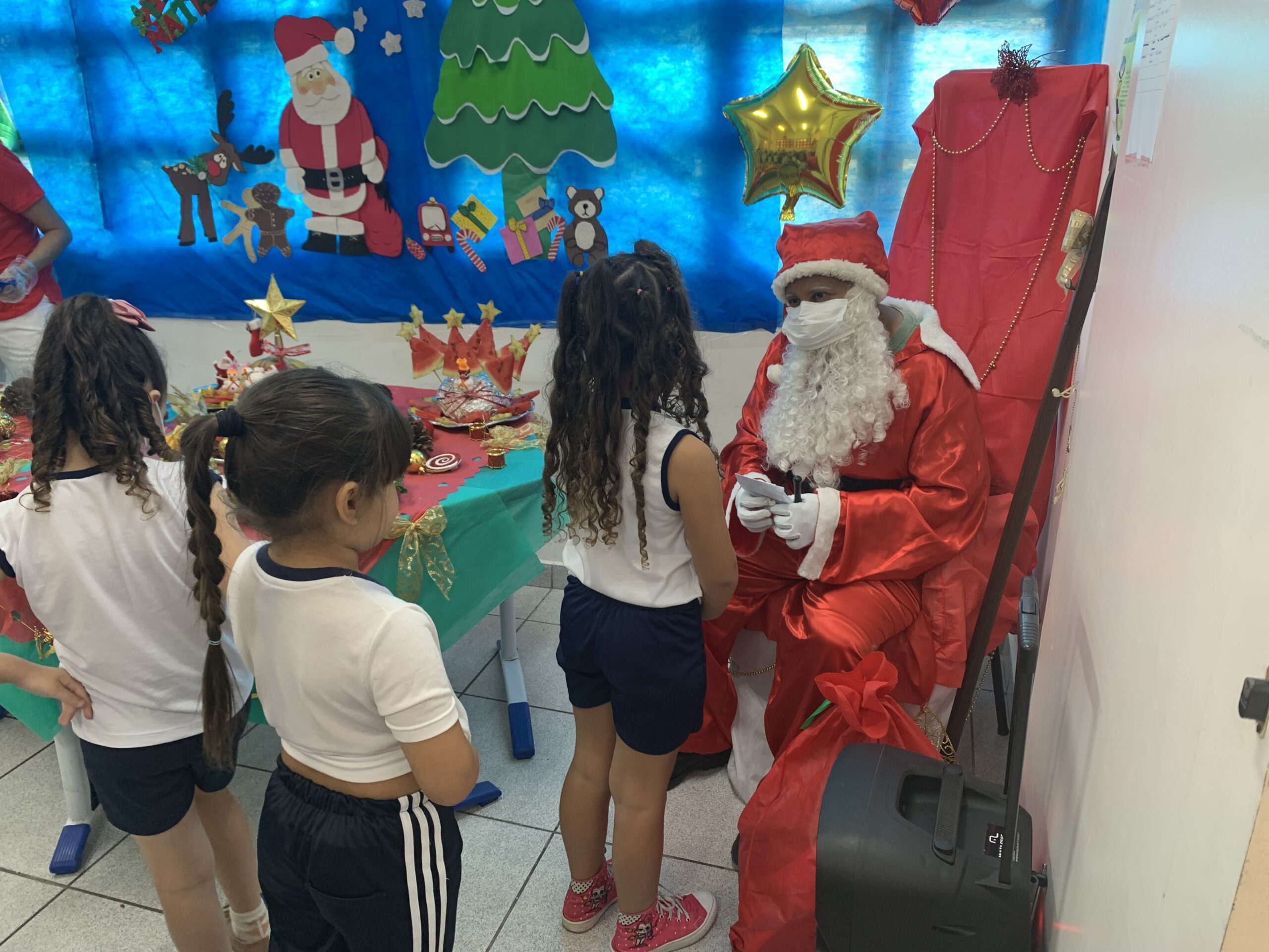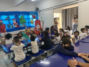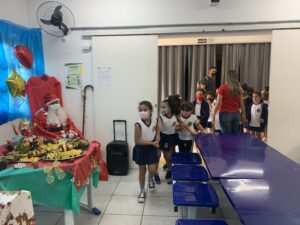 Os alunos se empolgaram com a novidade. A mesa de servir e o refeitório foram decorados com temas natalinos e ainda teve a visita do Papai Noel, que recebeu cartinhas e pedidos dos pequenos. Além do almoço natalino, os estudantes foram contemplados com presentes, por meio de uma parceria entre Seduc e Ecovias, já existente há alguns anos. A empresa realiza doação de brinquedos a serem distribuídos entre as crianças das unidades de ensino infantil.