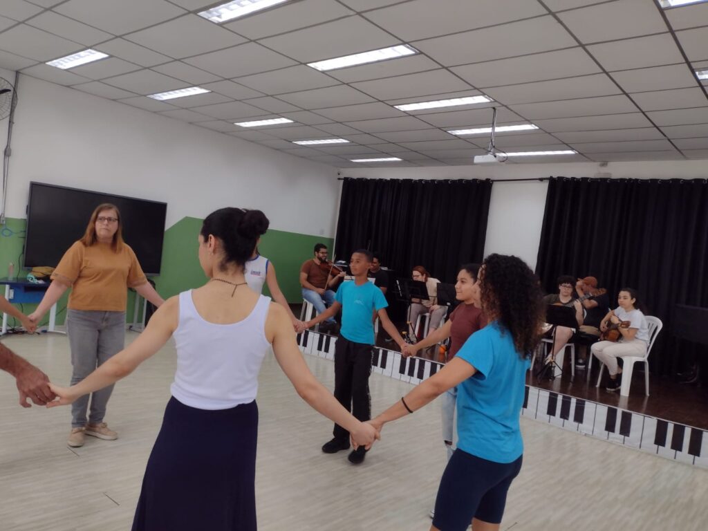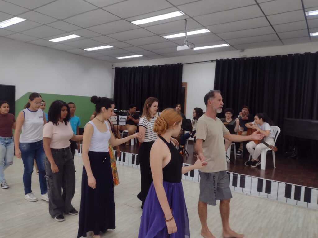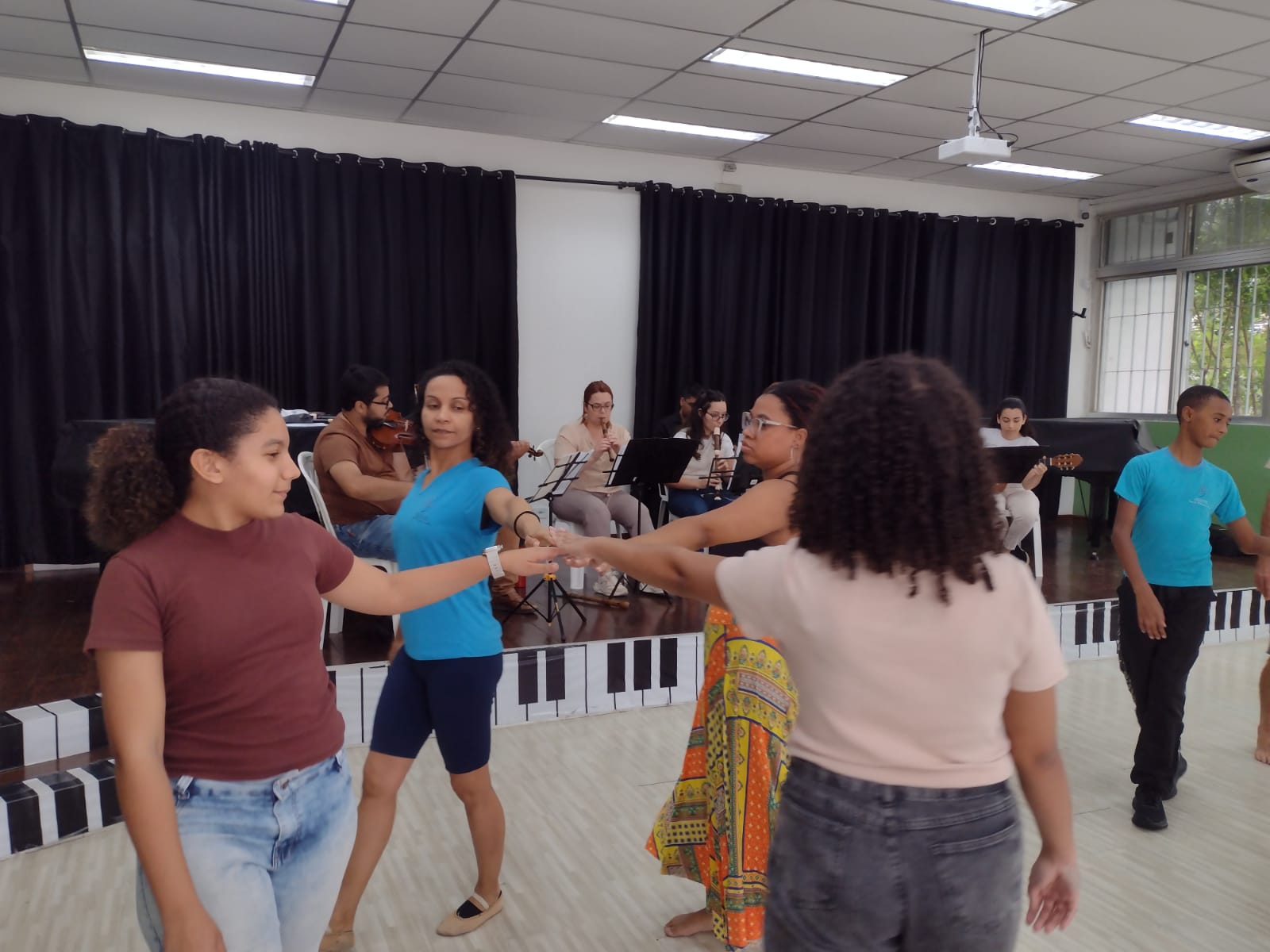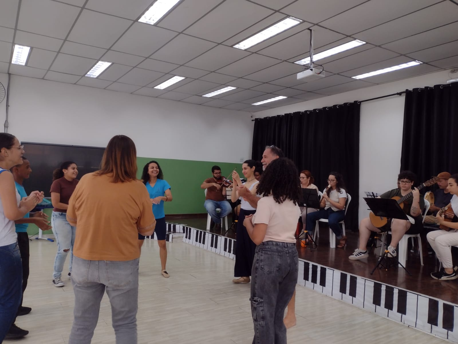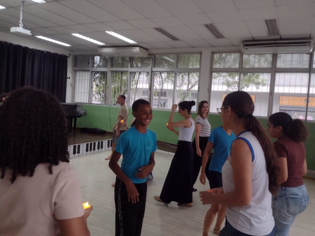 Repercussão – Ao final, o professor agradeceu aos alunos pelo desempenho se disse lisonjeado pelo convite da ETMD e que ficou maravilhado com a experiência tida na escola. “O legal aqui foi o privilégio que tive de realizar essa oficina com música ao vivo. Normalmente, na maioria dos lugares, eu tenho que levar as canções gravadas e um equipamento para tocá-las para que eu possa mostrar e ensinar as coreografias. Aqui na ETMD de Cubatão, pode realizar as atividades com instrumentos reais e alunos familiarizados com a história e preparados para a oficina. Aprenderam os movimentos com facilidade e se mostraram bastante aplicados”.