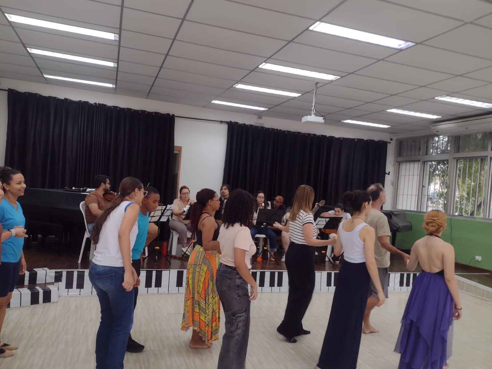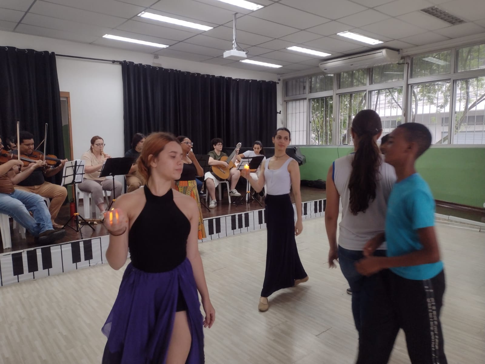 Já no período da noite da sexta (14), marcando o encerramento das atividades, com instrumentos disponibilizados pela escola e bailarinos, houve a concretização aos participantes da prática coletiva em música de câmara, coroada com a produção de uma apresentação final, integrando músicos e bailarinos. Nesta parte, eles se apresentaram a caráter, com roupas adequadas e típicas à prática da época e trabalharam técnicas de composição coreográfica com base na estética renascentista. Também propiciou aos músicos o contato com a execução de repertório do período em conjunto de música de câmara.