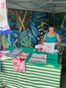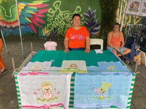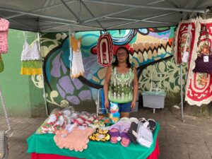 Dona Marinalva atua há 20 anos na área. Com as técnicas do crochê, expressou a importância da feira na cidade: “Conheci o artesanato por meio de uma colega, resolvi aprender sobre, e quando conheci a feira, achei muito importante, pois dá visibilidade para os trabalhos feitos à mão e contribui economicamente”, afirmou.