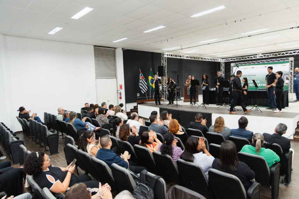 A Prefeitura de Cubatão realizou, nesta quarta (29), as assinaturas de contratos dos novos moradores do Edifício Castro, histórico empreendimento situado no coração da cidade. É mais um passo rumo à conquista da tão sonhada casa própria para 26 das 81 famílias contempladas, que em breve vão poder morar na reformulada edificação. Participaram do ato o prefeito César Nascimento e a vice-prefeita Andrea Castro, que também é secretária de Habitação, além de representantes da Companhia de Desenvolvimento Habitacional e Urbano (CDHU), da Caixa Econômica Federal (CEF) e da Câmara de Vereadores.  A abertura do evento contou com a apresentação musical da ‘Orquestra de Flautas Aura Sonora’ – da Escola Técnica de Música e Dança (ETMD) Prof. Ivanildo Rebouças, cujo maestro foi o professor  Marcelo Jesus do Rozário.