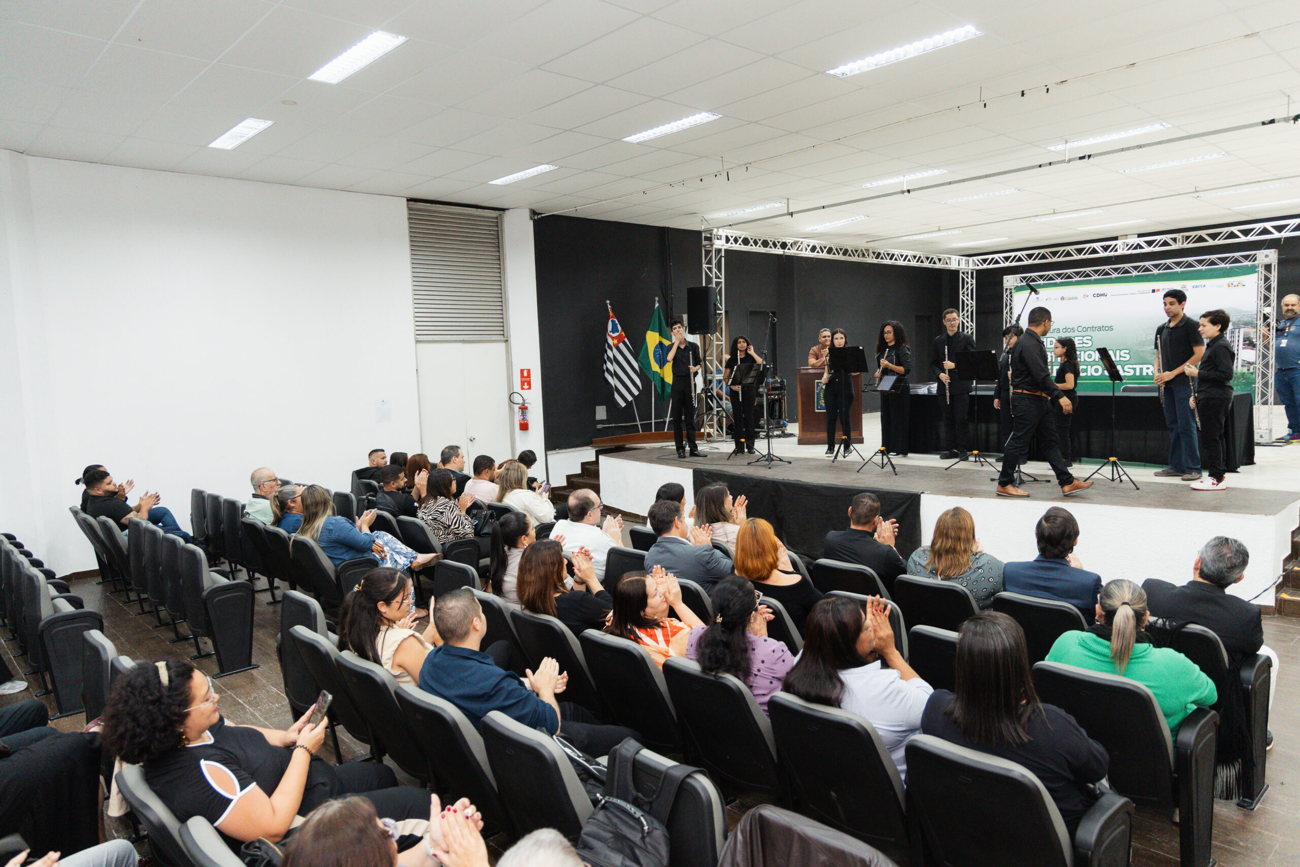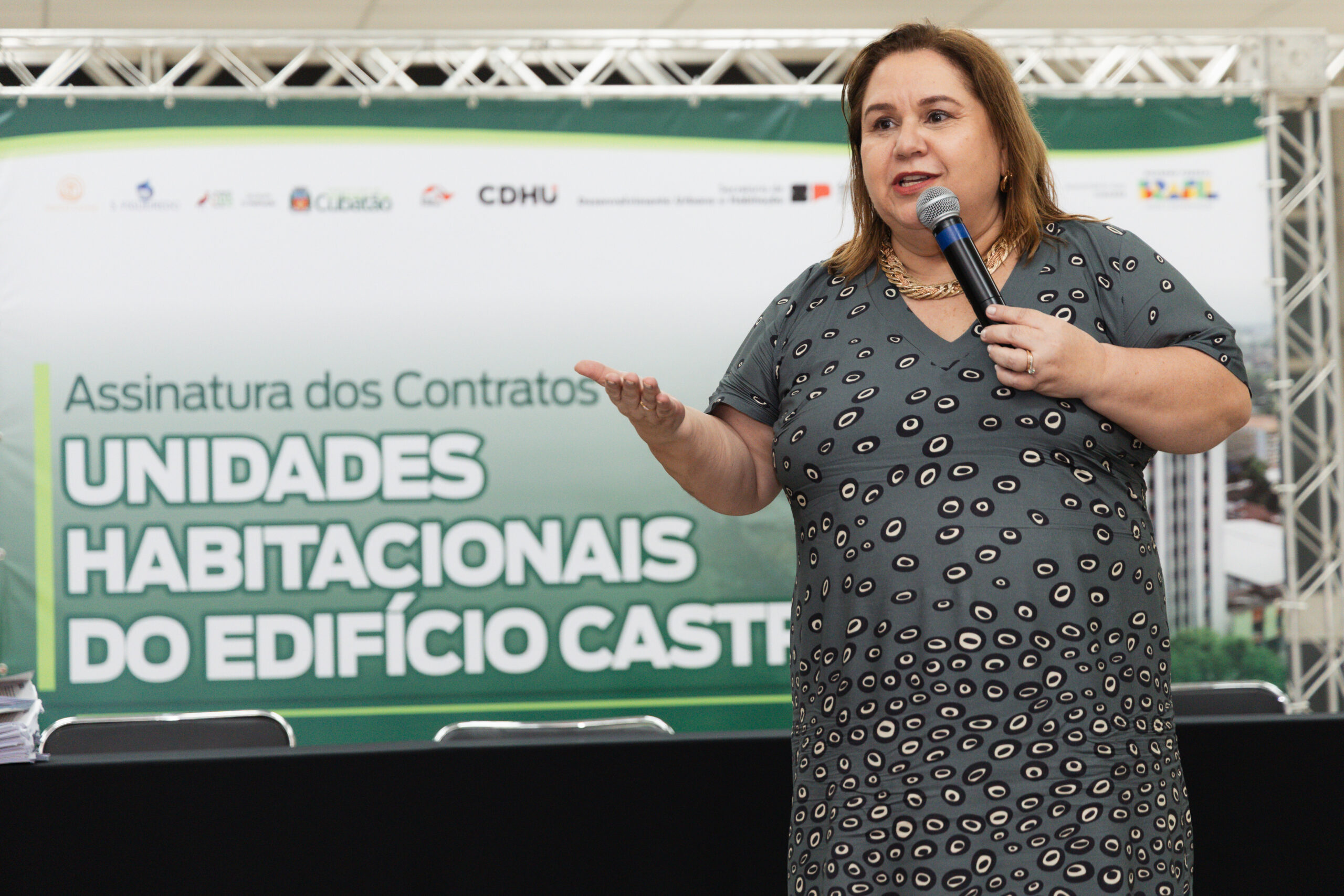A Prefeitura de Cubatão realizou, nesta quarta (29), as assinaturas de contratos dos novos moradores do Edifício Castro, histórico empreendimento situado no coração da cidade. É mais um passo rumo à conquista da tão sonhada casa própria para 26 das 81 famílias contempladas, que em breve vão poder morar na reformulada edificação. Participaram do ato o prefeito César Nascimento e a vice-prefeita Andrea Castro, que também é secretária de Habitação, além de representantes da Companhia de Desenvolvimento Habitacional e Urbano (CDHU), da Caixa Econômica Federal (CEF) e da Câmara de Vereadores.  A abertura do evento contou com a apresentação musical da ‘Orquestra de Flautas Aura Sonora’ – da Escola Técnica de Música e Dança (ETMD) Prof. Ivanildo Rebouças, cujo maestro foi o professor  Marcelo Jesus do Rozário.