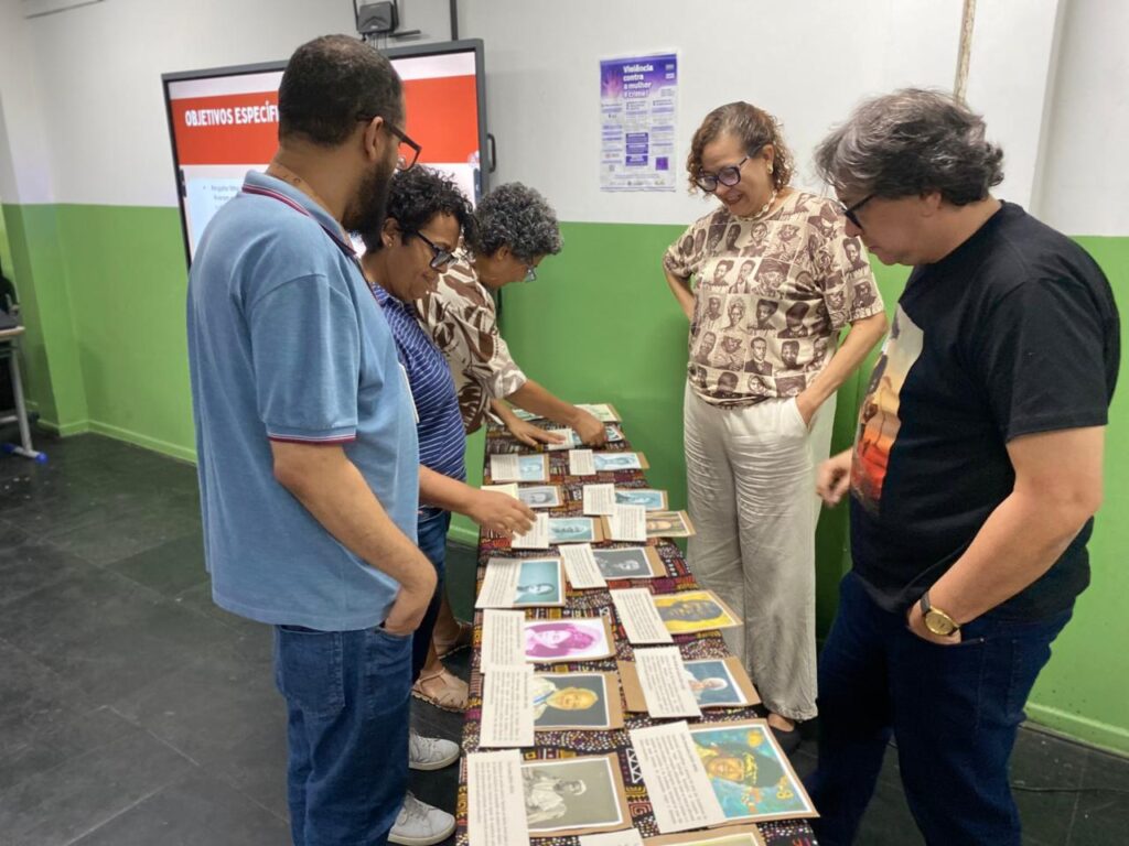 Heróis emoldurados – Entre os 20 nomes citados, os participantes foram convidados pegarem um ou dois nomes para comentar para o grupo a simbologia da escolha. Além de Zumbi dos Palmares, entre os recortes escolhidos estavam:
