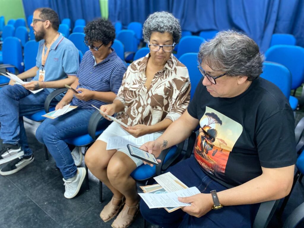 A preletora começa apresentando vários livros que retratam a temática da oficina, reforçando a importância de haver uma literatura vasta neste sentido disponível para os professores e até para o leitor comum. No caso dos professores que fazem parte da rede municipal de Ensino, há o compromisso da Seduc em atender o que preconiza a Lei de Diretrizes de Base (LDB) da Educação Nacional, sob a égide da Lei 10.639/2003, que torna obrigatório o ensino da história e cultura afro-brasileira no ensino fundamental e médio em todo o País, que busca valorizar a diversidade étnico-racial e combater o racismo. Cinco anos depois, a Lei 11.645/2008 ampliou essa obrigatoriedade, incluindo a história e cultura indígena, os chamados povos originários do Brasil.