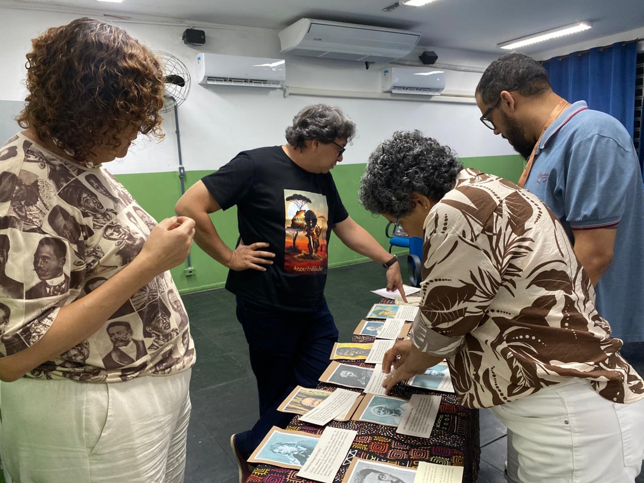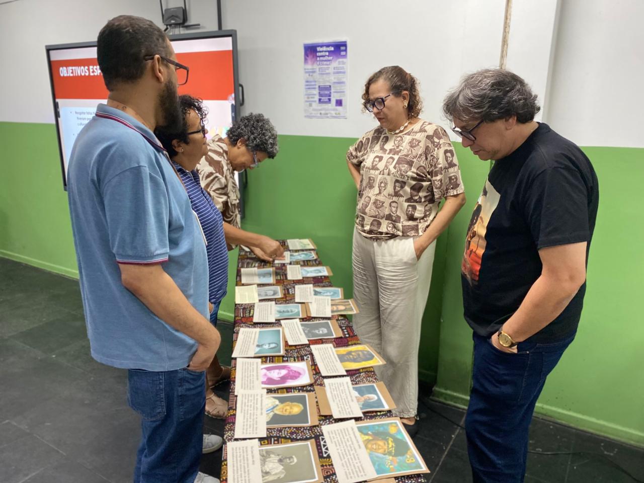 Heróis emoldurados – Entre os 20 nomes citados, os participantes foram convidados pegarem um ou dois nomes para comentar para o grupo a simbologia da escolha. Além de Zumbi dos Palmares, entre os recortes escolhidos estavam: