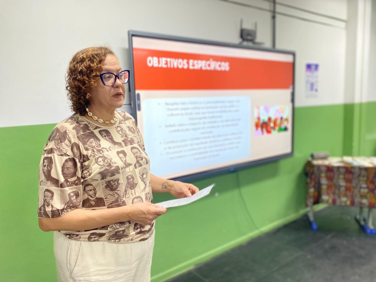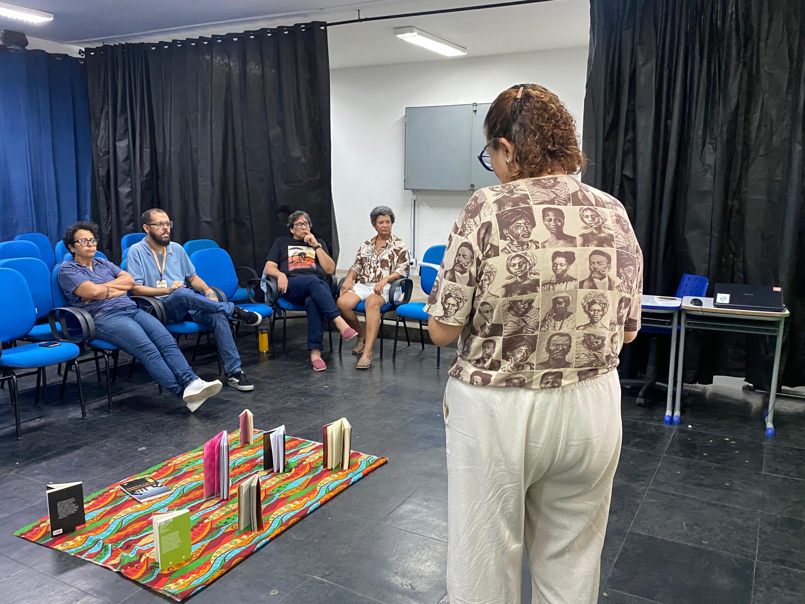 A preletora começa apresentando vários livros que retratam a temática da oficina, reforçando a importância de haver uma literatura vasta neste sentido disponível para os professores e até para o leitor comum. No caso dos professores que fazem parte da rede municipal de Ensino, há o compromisso da Seduc em atender o que preconiza a Lei de Diretrizes de Base (LDB) da Educação Nacional, sob a égide da Lei 10.639/2003, que torna obrigatório o ensino da história e cultura afro-brasileira no ensino fundamental e médio em todo o País, que busca valorizar a diversidade étnico-racial e combater o racismo. Cinco anos depois, a Lei 11.645/2008 ampliou essa obrigatoriedade, incluindo a história e cultura indígena, os chamados povos originários do Brasil.