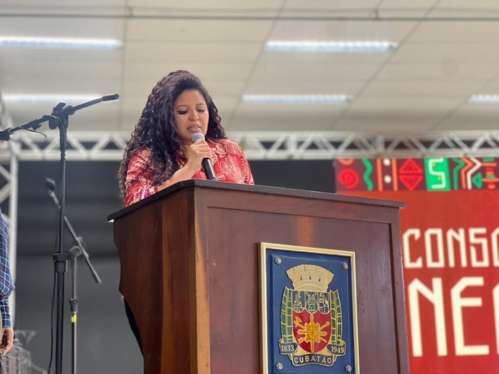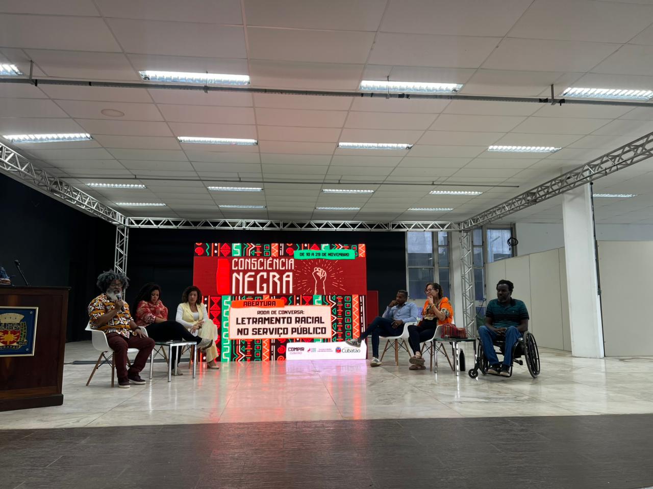 A Prefeitura de Cubatão, por meio da Secretaria da Mulher e Direitos Humanos (SeMulher-DH) e do Conselho Municipal de Promoção da Igualdade Racial (Compir), promove o Mês da Consciência Negra, de 10 a 29 de novembro, por toda a cidade. O tema deste ano é “Da resistência à reparação: Cultura negra, memória viva e diversidade em movimento”, sob o lema “Cubatão é território negro de memória e futuro; nossa cultura resiste, repara e refaz o mundo”. A abertura oficial ocorreu na manhã desta segunda-feira (10), no Bloco Cultural, com roda de conversa sobre letramento racial no serviço público, para plateia composta por servidores e sociedade civil (também representando grupos e organizações).
