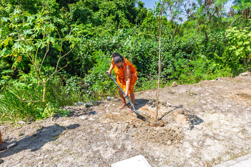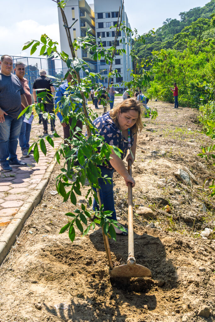 Moradora do bairro Vila Natal desde 1992, a Sra. Vera Pereira da Silva, natural da Bahia, fez questão de participar do plantio das mudas e destacou a importância da ação para a comunidade. “Eu amo a natureza. Já faz muitos anos que moro aqui na Vila Natal e é muito importante estar acompanhando esse plantio, que ajuda a melhorar o nosso bairro e o meio ambiente”, afirmou.