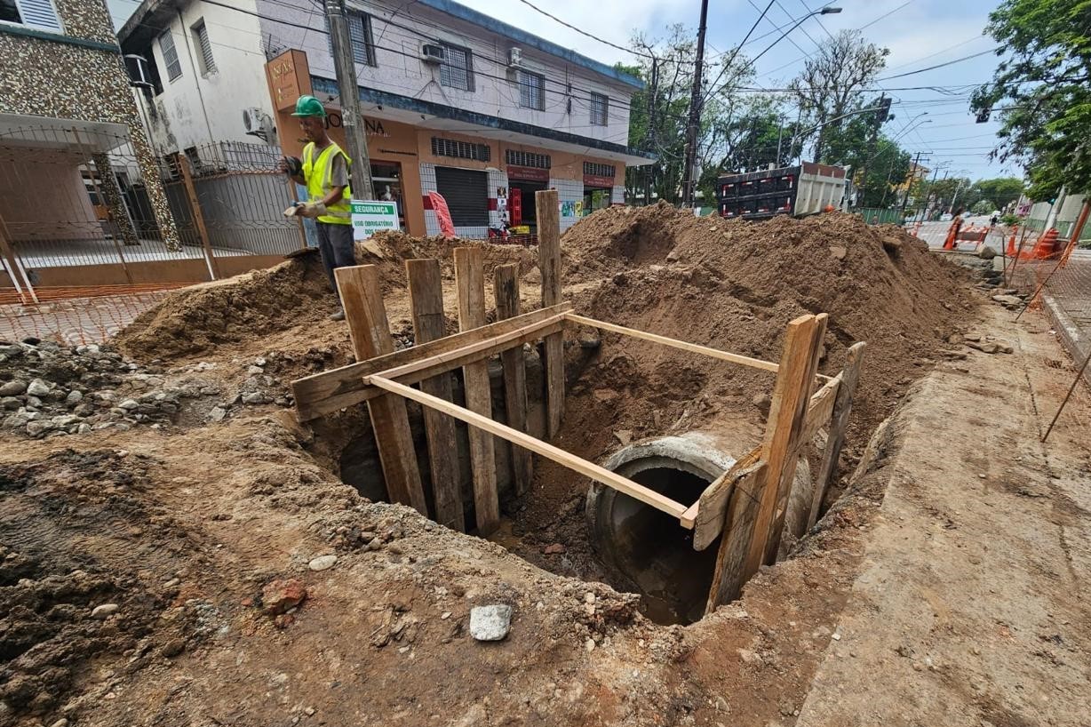 As obras de drenagem e pavimentação que ocorrem em importante trecho do bairro Vila Nova teve início no final de setembro de 2025. Os serviços estão sendo executados na Avenida Nações Unidas, entre a Avenida Nossa Senhora da Lapa e a Rua João Pessoa. A intervenção contempla o assentamento de 140 metros de tubulação em concreto, com a execução de poços de visita ao longo do sistema, que fará muita diferença na vida dos moradores daquela área, evitando inundações quando das chuvas mais fortes. Além dos serviços de drenagem, também está sendo realizada a pavimentação asfáltica no trecho em que a tubulação está sendo implantada.