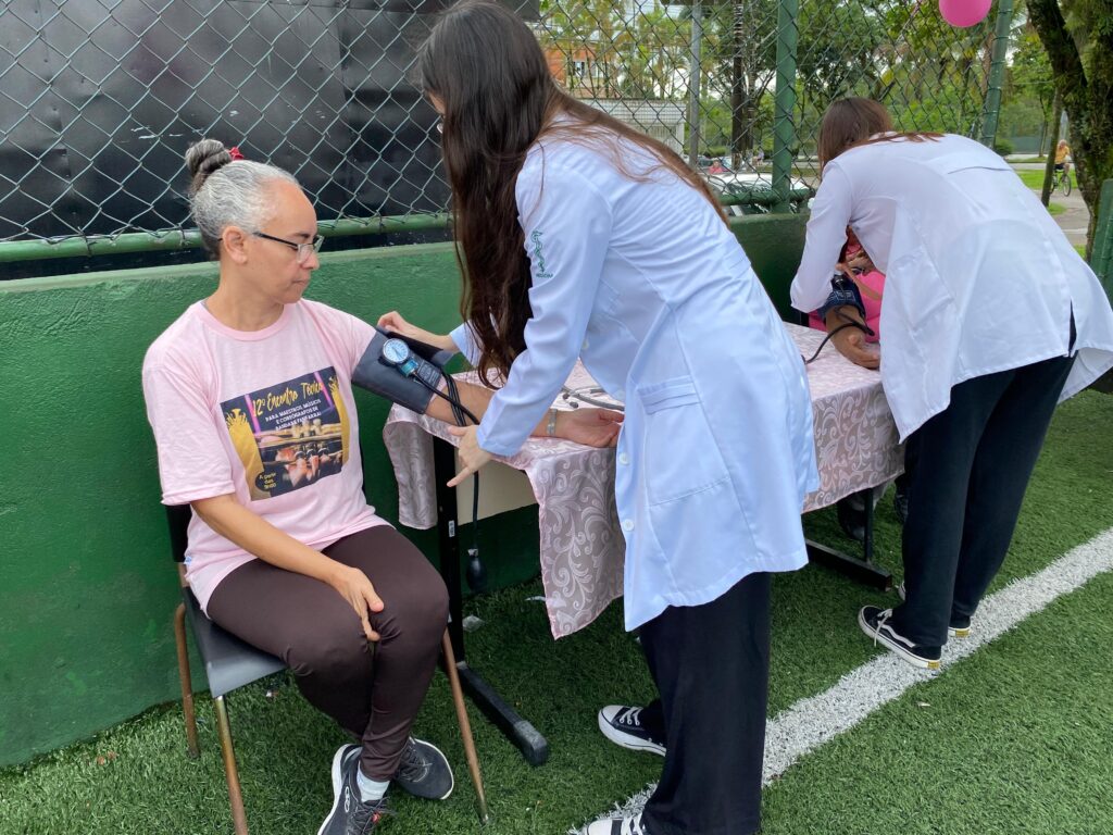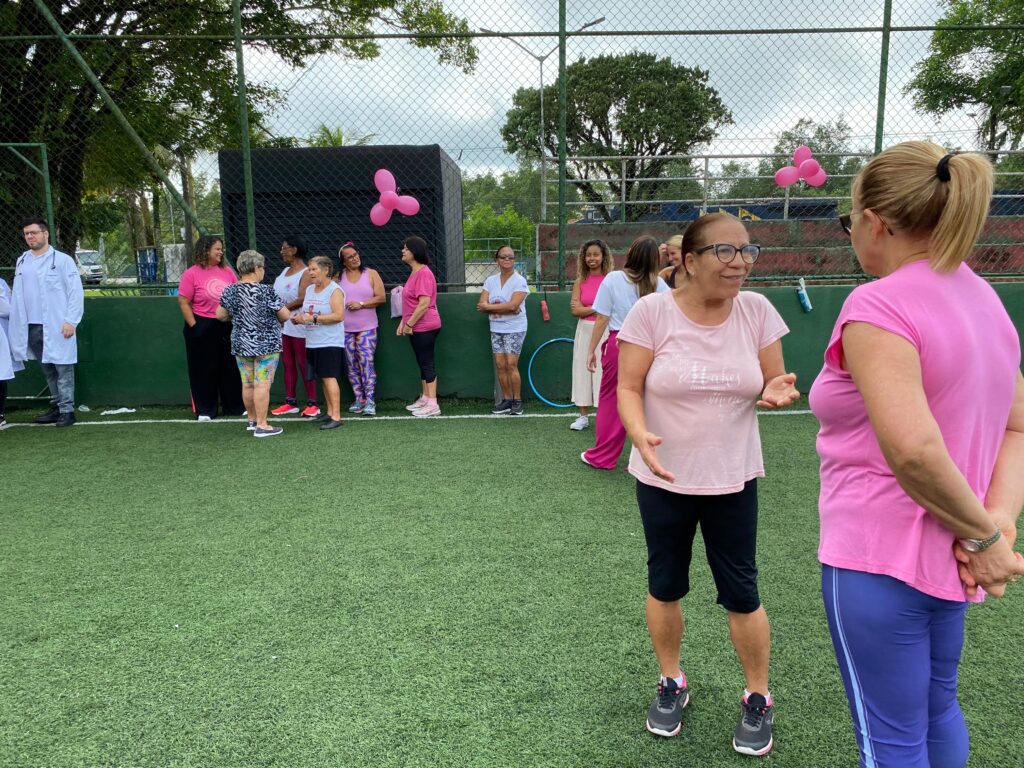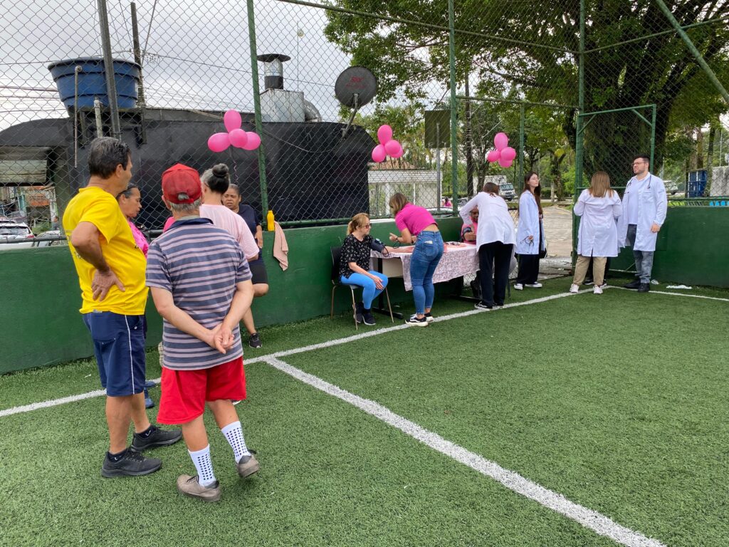 Nesta segunda-feira (21), moradoras da Vila São José tiverem a manhã repleta de atividades com profissionais da saúde em um evento proporcionado pela Secretaria Municipal de Saúde (SMS) de Cubatão. Na quadra de futebol society do bairro, às 8h30, começaram as dinâmicas e alongamentos físicos com a fisioterapeuta Alyne e a educadora física Victória. Logo após, estudantes de Medicina da Universidade São Judas Tadeu aferiram a pressão arterial e realizaram exame de glicemia nas mulheres presentes. Já na Unidade de Saúde da Família da Vila São José ocorreu a palestra sobre a saúde da mulher, em que foi ressaltada a importância da prevenção contra o câncer de mama e temas como a saúde mental das mulheres. As enfermeiras Luciana e Anna também orientaram as presentes sobre os exames ginecológicos que estão sendo realizados nas unidades de saúde do município.