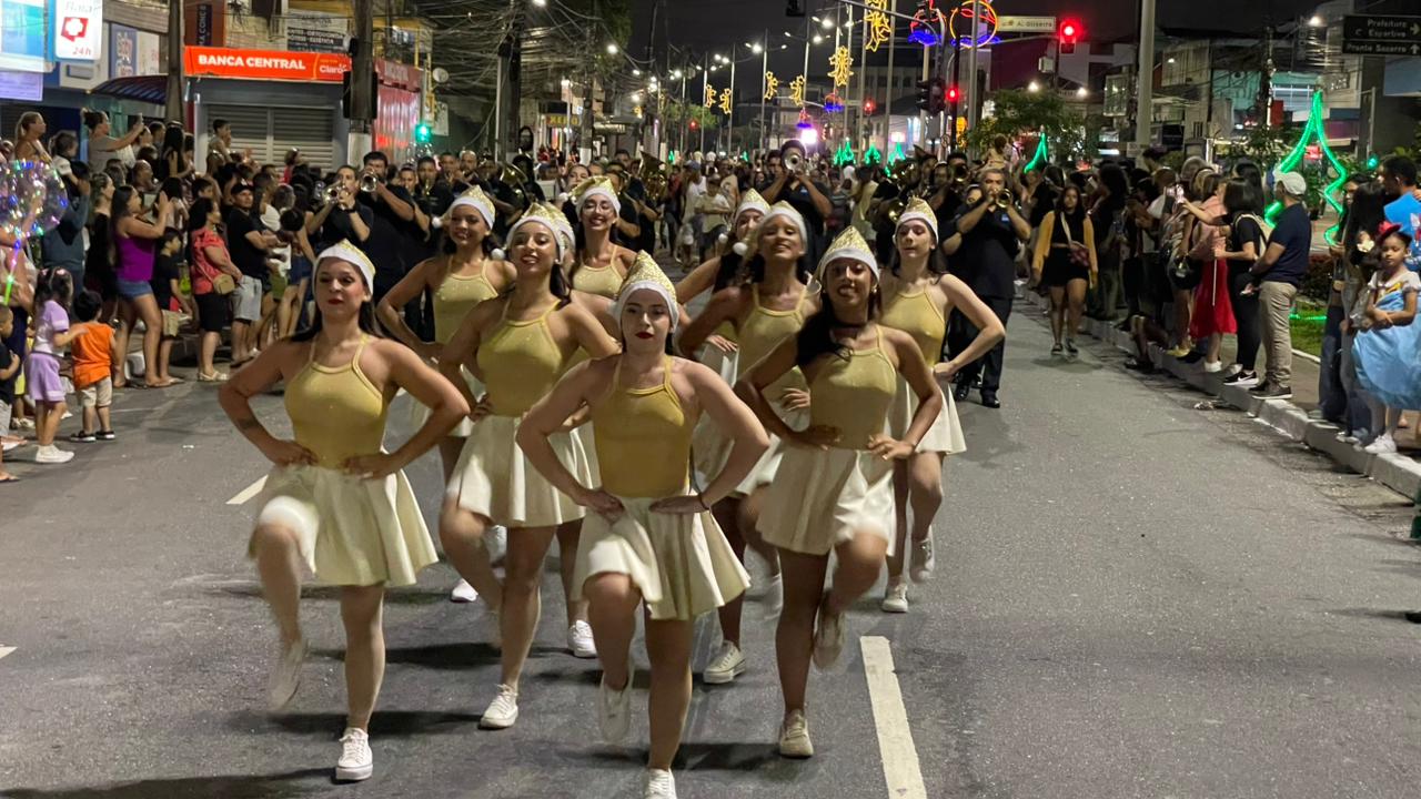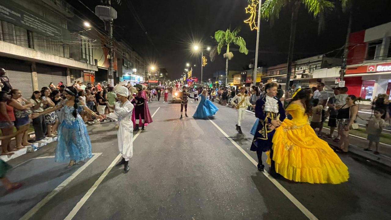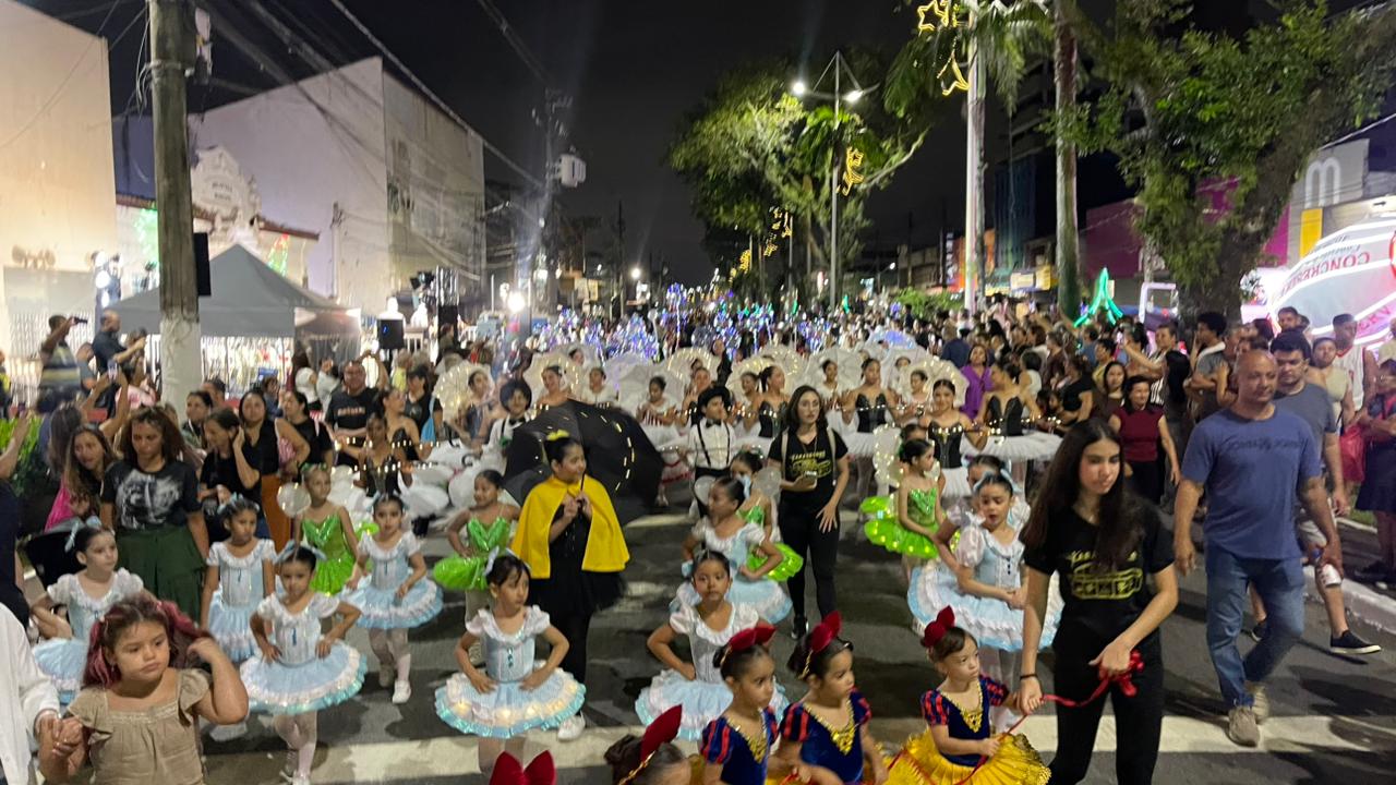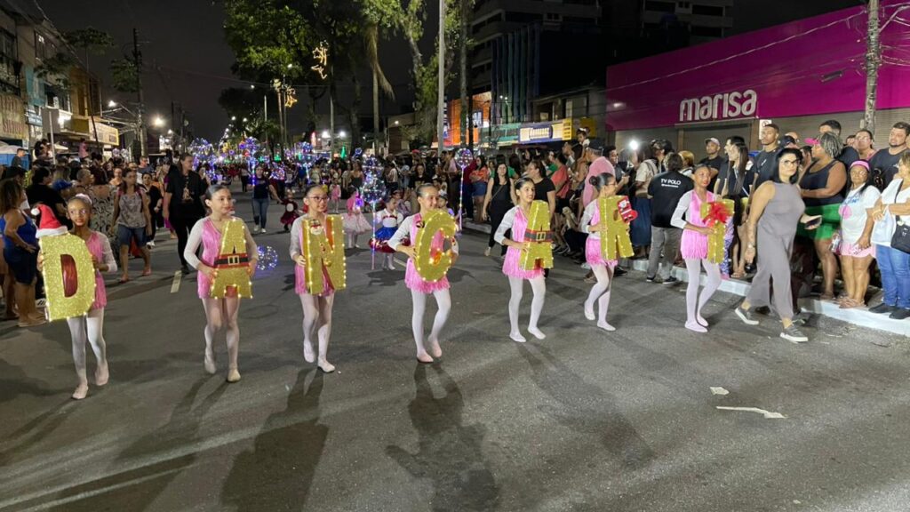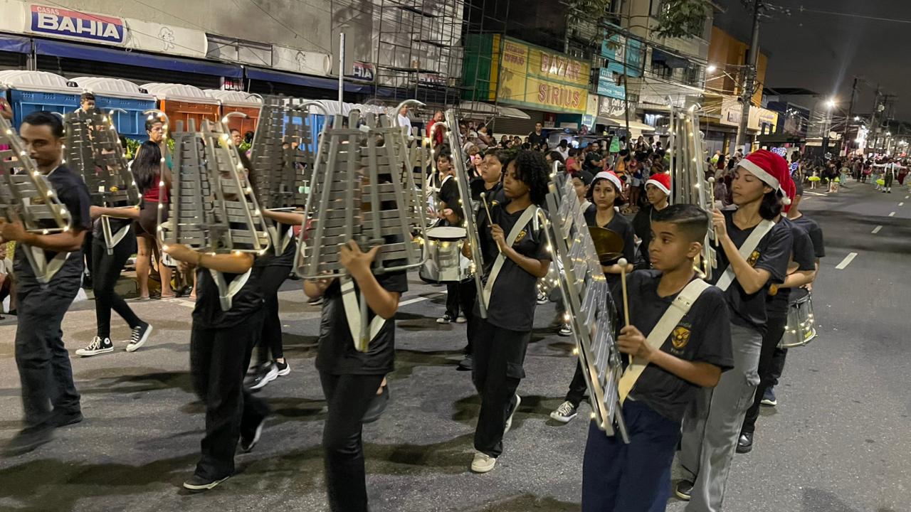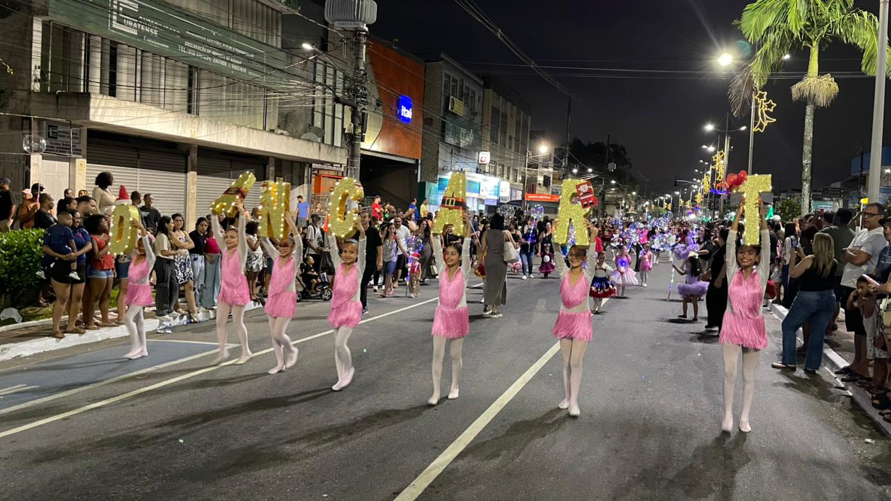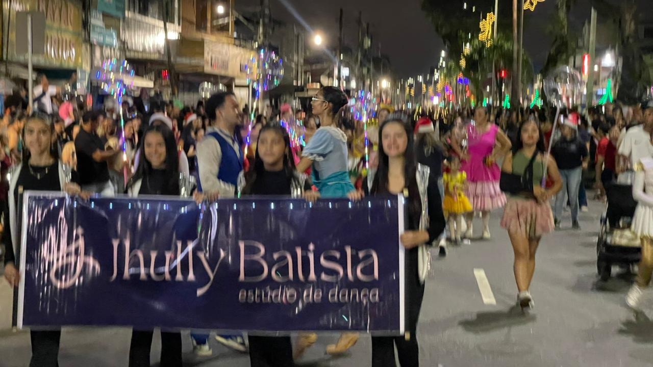 A Parada de Natal reuniu mil participantes desfilando desde o Parque Anilinas até a Igreja Matriz Nossa Senhora da Lapa.