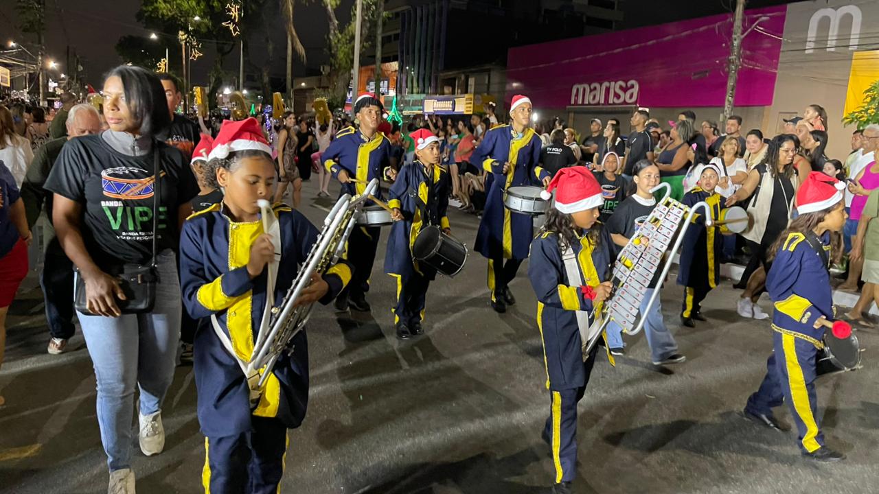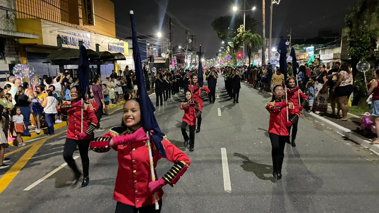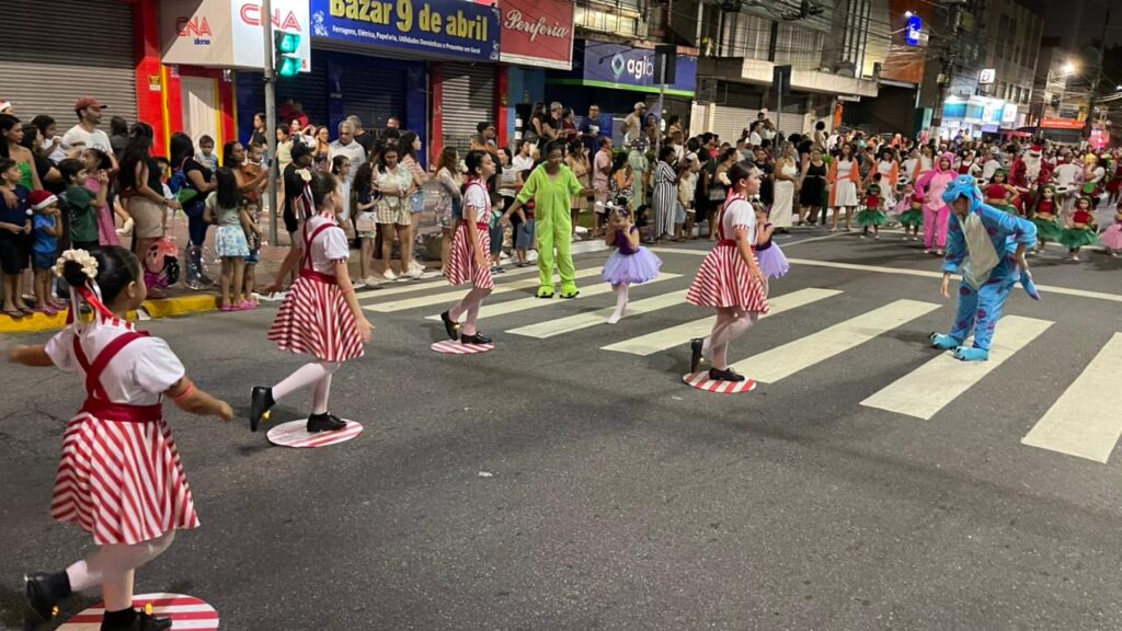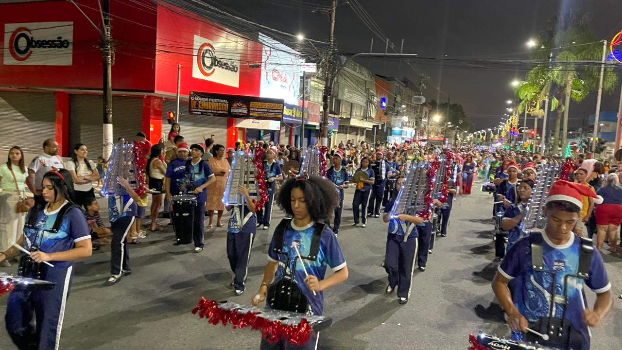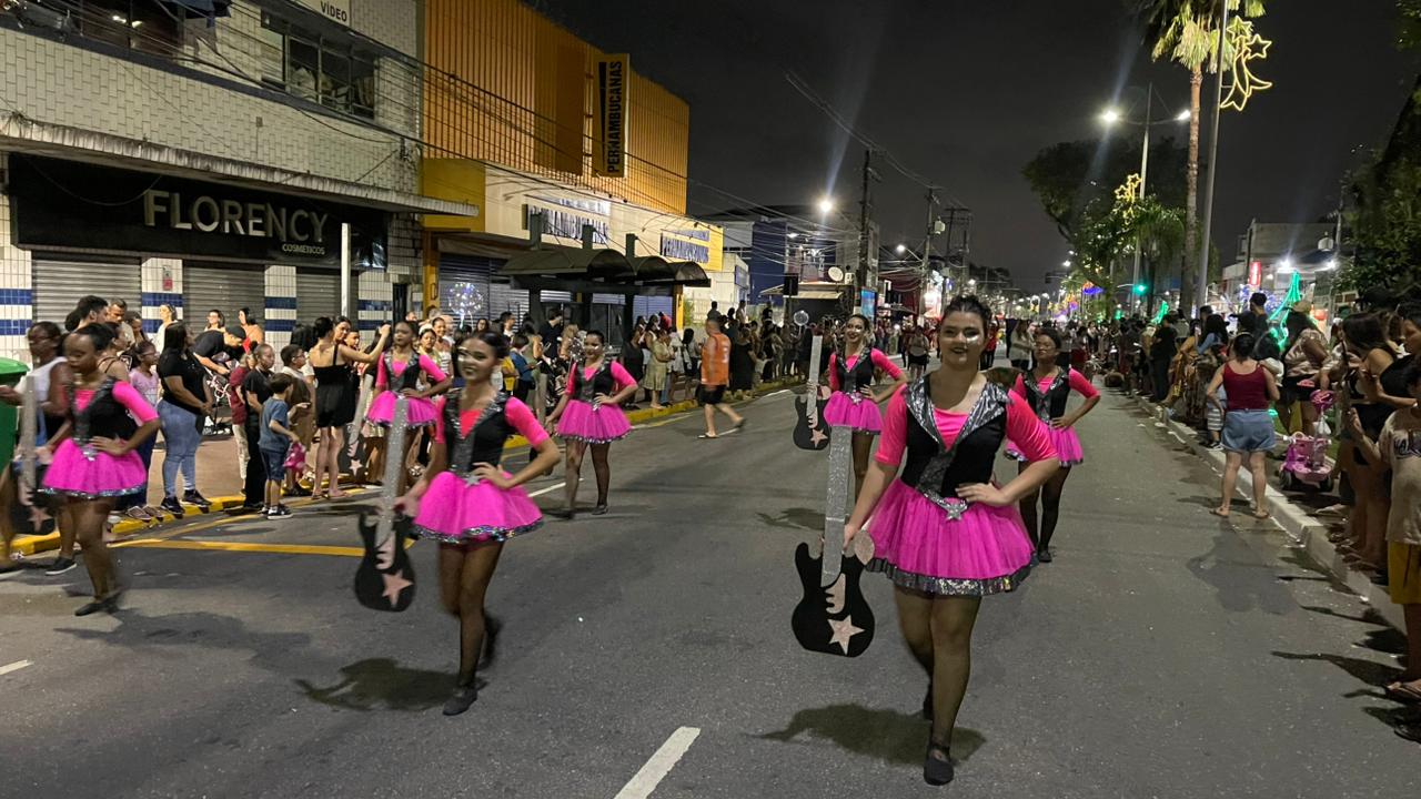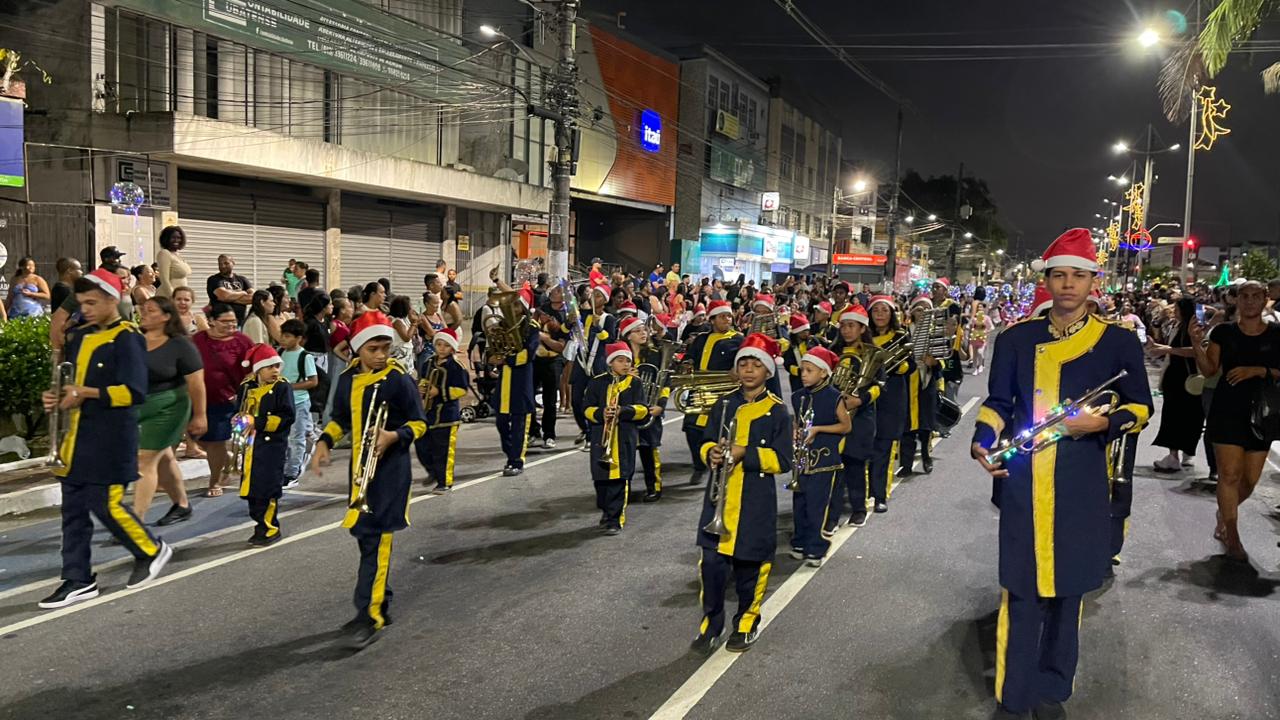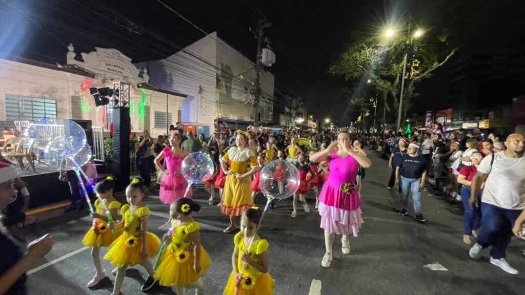 A Parada de Natal reuniu mil participantes desfilando desde o Parque Anilinas até a Igreja Matriz Nossa Senhora da Lapa.