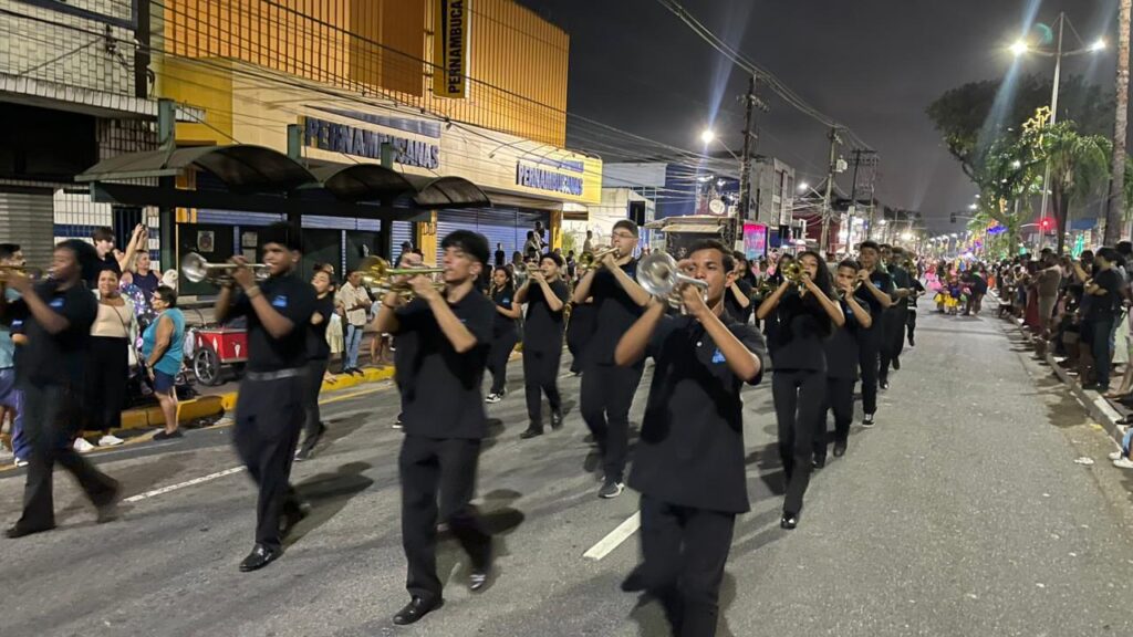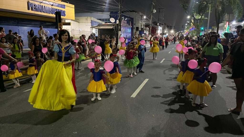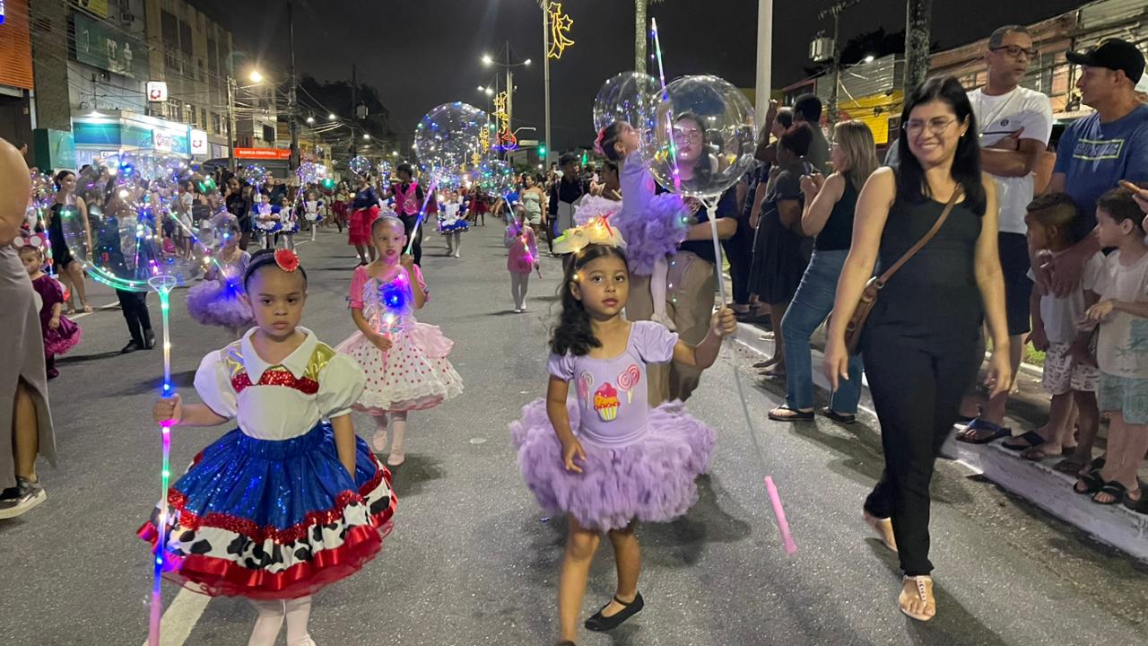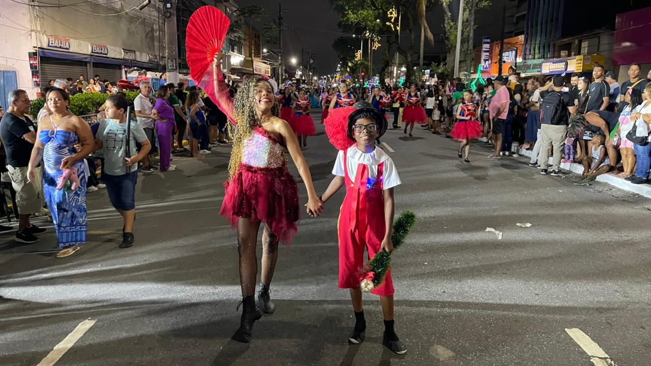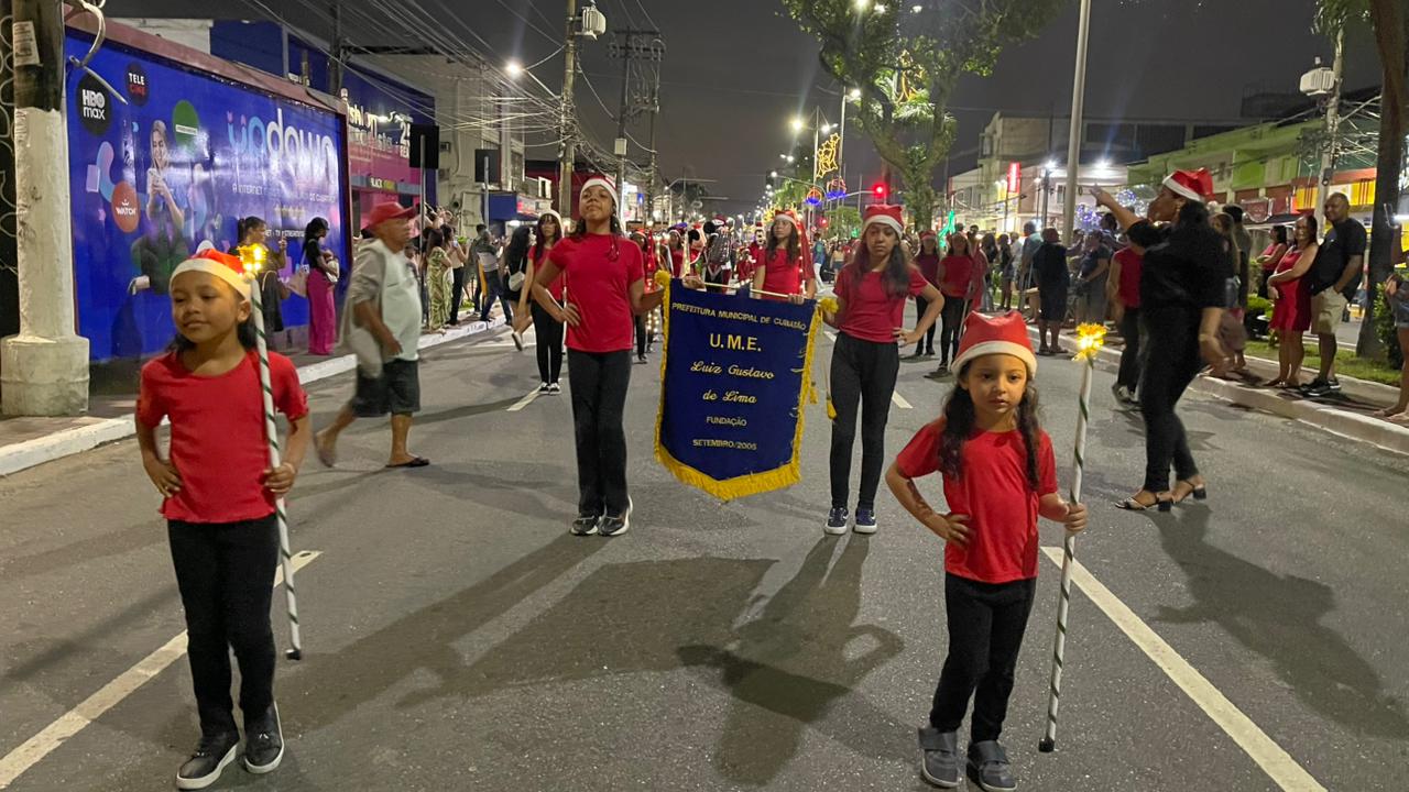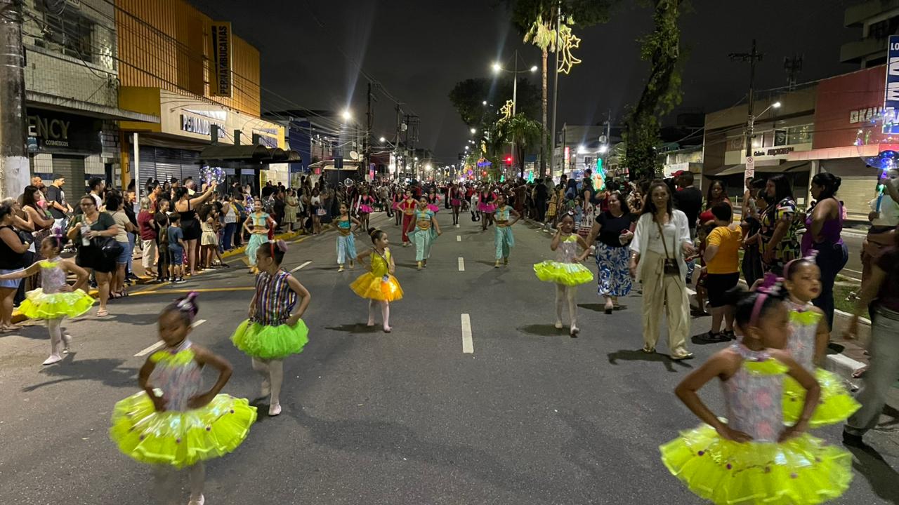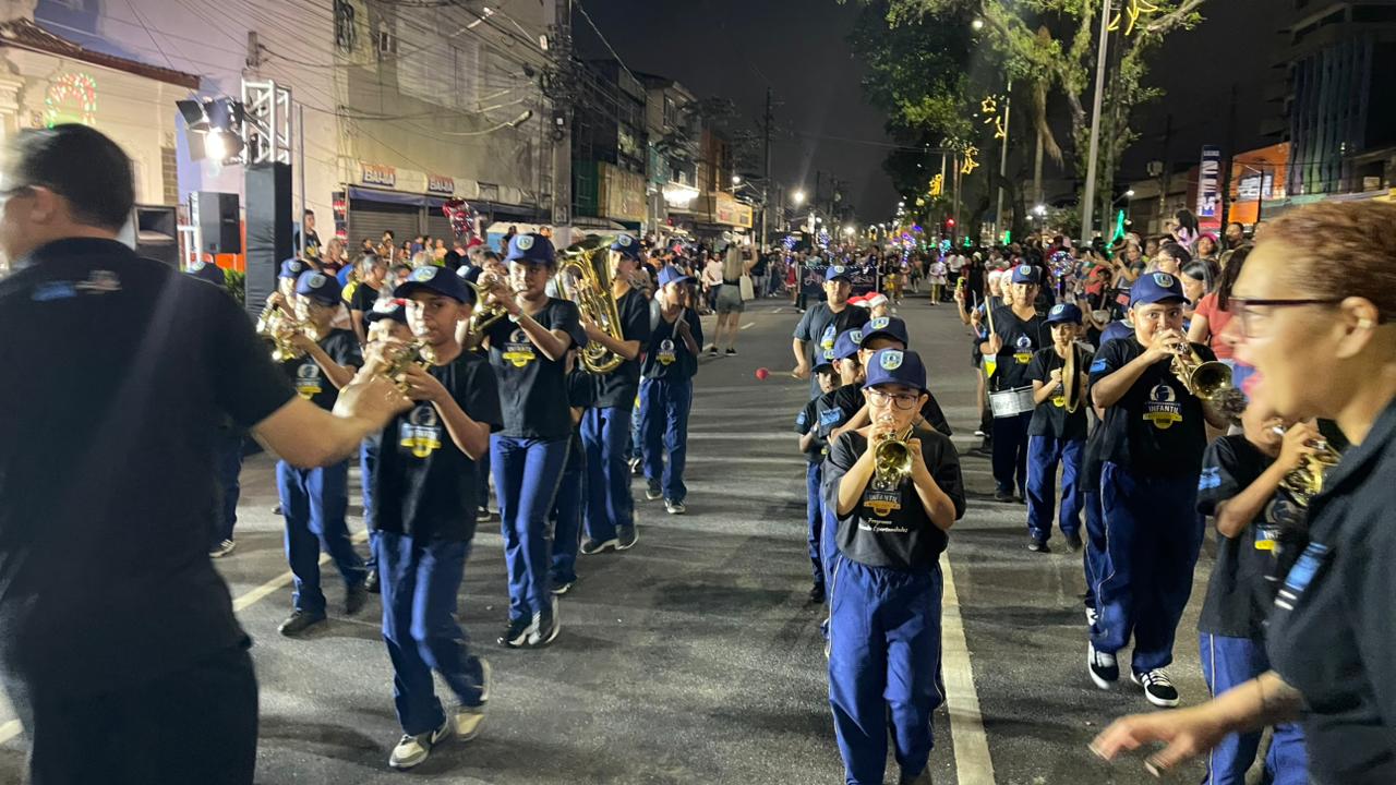 A Parada de Natal reuniu mil participantes desfilando desde o Parque Anilinas até a Igreja Matriz Nossa Senhora da Lapa.