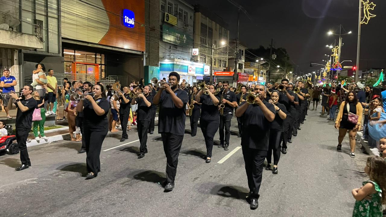 Dali, o Papai Noel seguiu para o seu trono instalado em frente à Biblioteca Municipal e recebeu as crianças. No palco, houve Concerto de Natal da Orquestra de Metais e Percussão, que encerra a programação da noite.