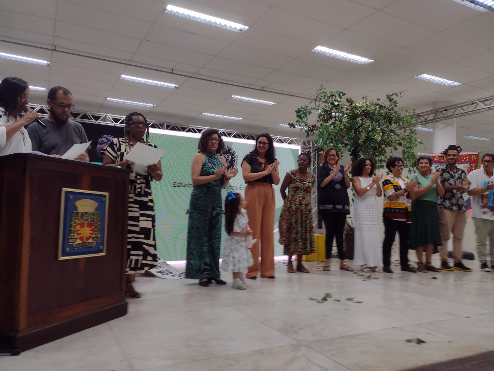 A cerimônia desta segunda contou a participação das titulares da Seduc e da SMM-DH,  respectivamente, Danielle Souza e Jaque Barbosa, que estavam acompanhadas de Natali Ribeiro, presidente do Conselho de Igualdade Racial e da professora Magali Pereira, coordenadora pedagógica e membro do NERER –  Núcleo de Educação para Relações Étnico-Raciais da Seduc.