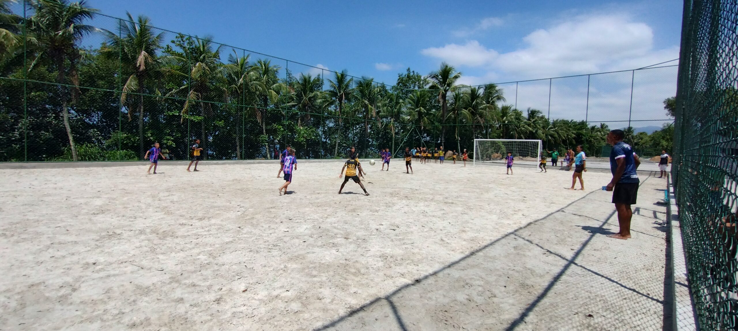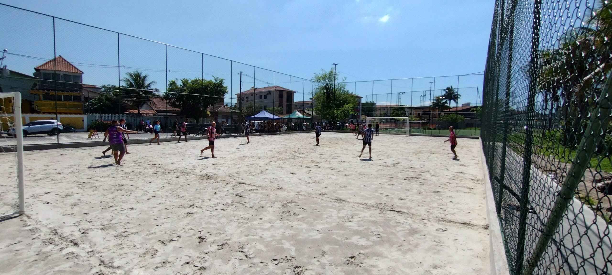 Na manhã de inauguração do equipamento, times infantis e adulto de futebol de areia fizeram demonstração no campo e aprovaram o local.
