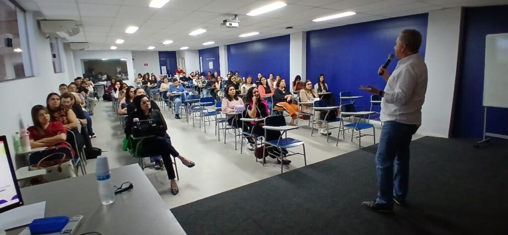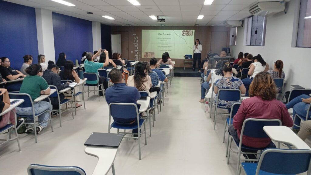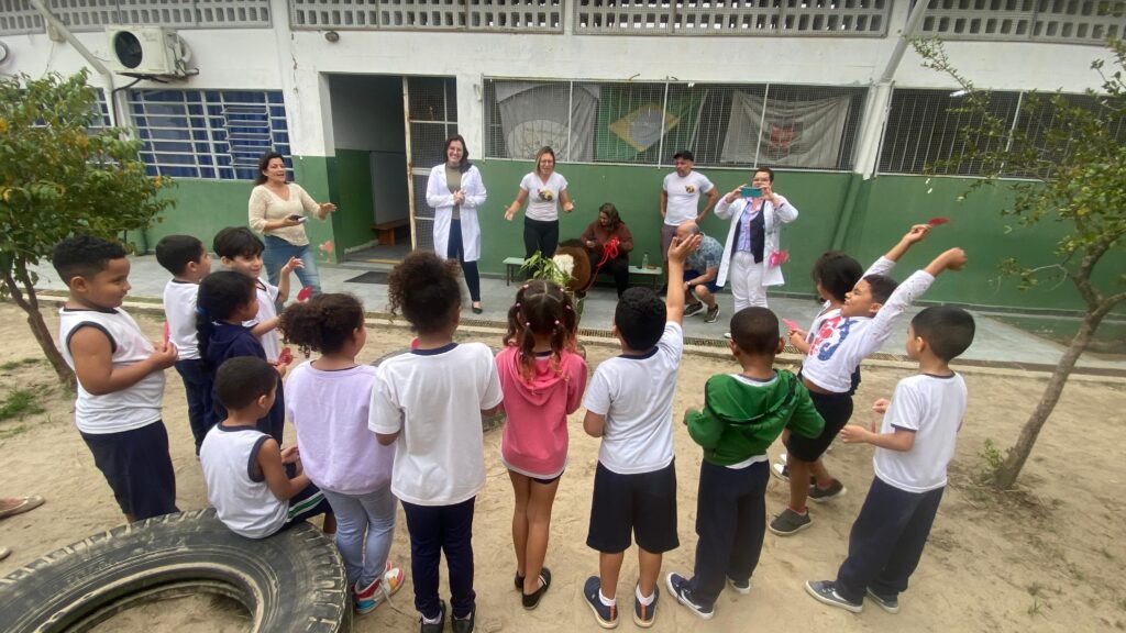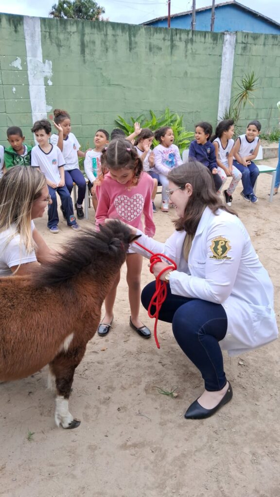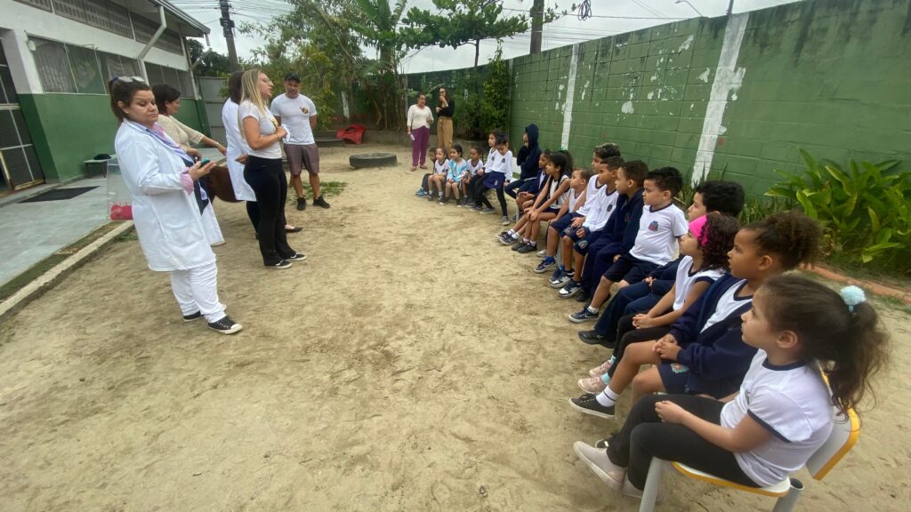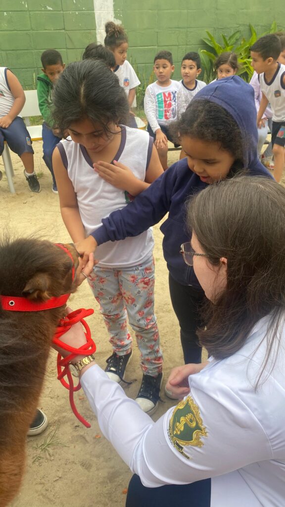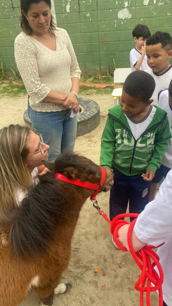 Na sexta-feira (5/9), a UME Amapá recebeu uma apresentação sobre ecoterapia, voltada para docentes e alunos. A iniciativa mostrou como esse método terapêutico contribui para o desenvolvimento biopsicossocial de crianças com deficiência ou necessidades especiais. Participaram da atividade estudantes e professores de três turmas, sob a condução da Dra. Nicole, da técnica de enfermagem Deise, da agente comunitária de saúde Priscila, da analista Michele e da enfermeira Elaine.
