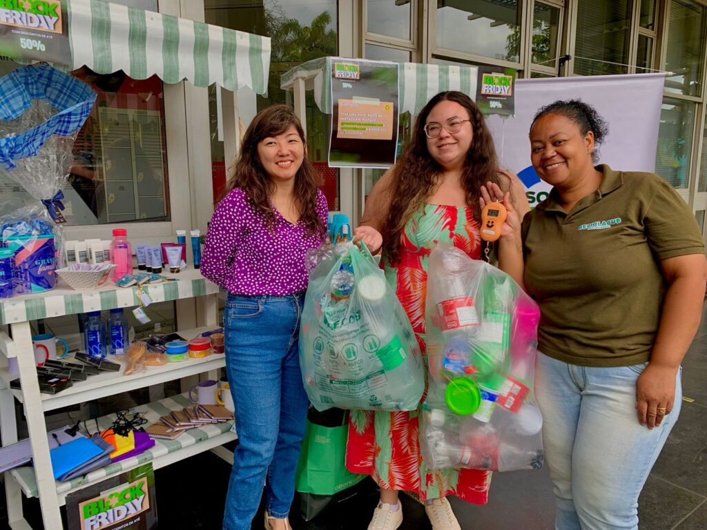 A Prefeitura de Cubatão, por meio da Secretaria Meio Ambiente, Segurança Climática e Bem-estar Animal, promoveu mais um Dia Verde, na manhã desta sexta-feira (14), para os servidores municipais, na entrada do Paço Municipal. A ação é uma ecotroca de embalagens plásticas por produtos eletrônicos, decorativos, de higiene pessoal, cosméticos, produtos para pets entre outros. A última edição do ano veio com promoções da Black Friday, com 50% de desconto: para participar bastava tirar uma foto de um dos estandes e publicar no Instagram, marcando os perfis da Prefeitura (@prefeituradecubatao) e do Movimento ODS (@odscubatao).