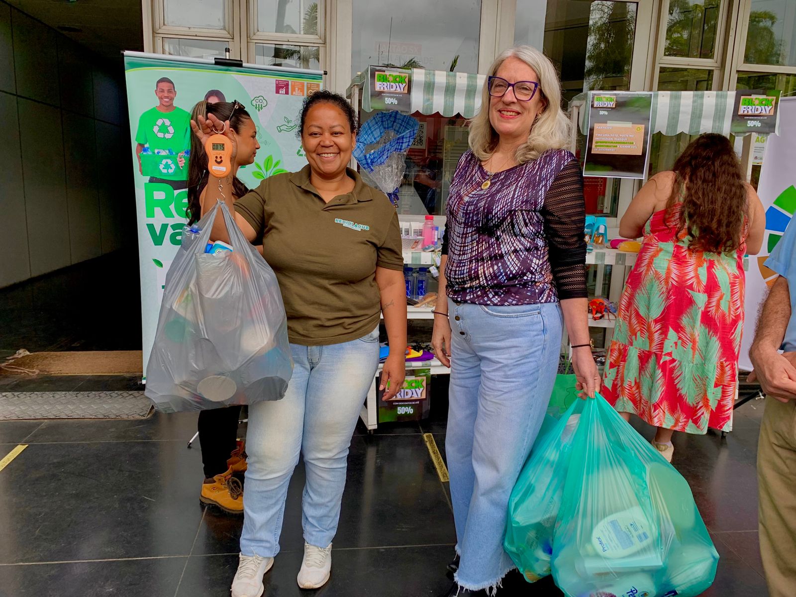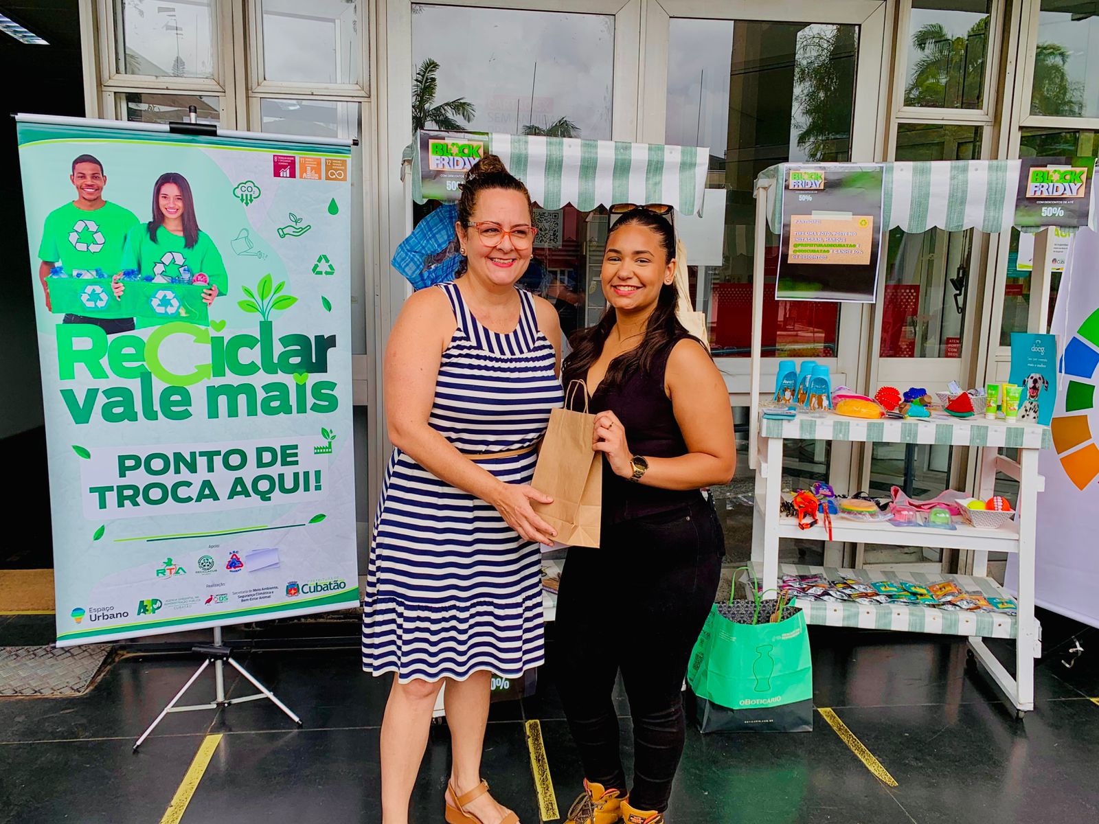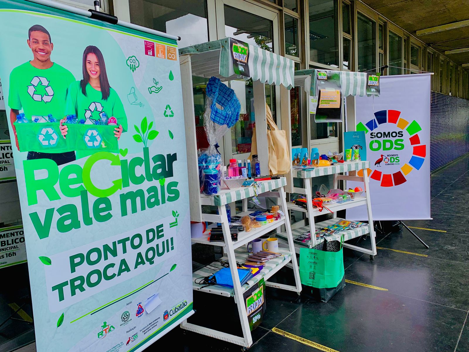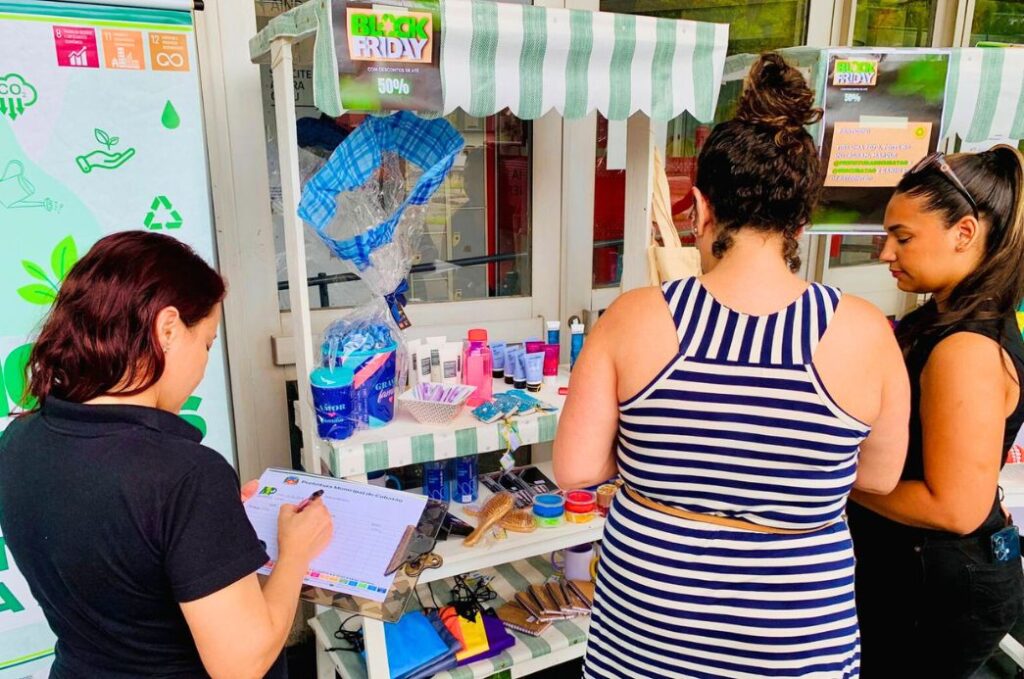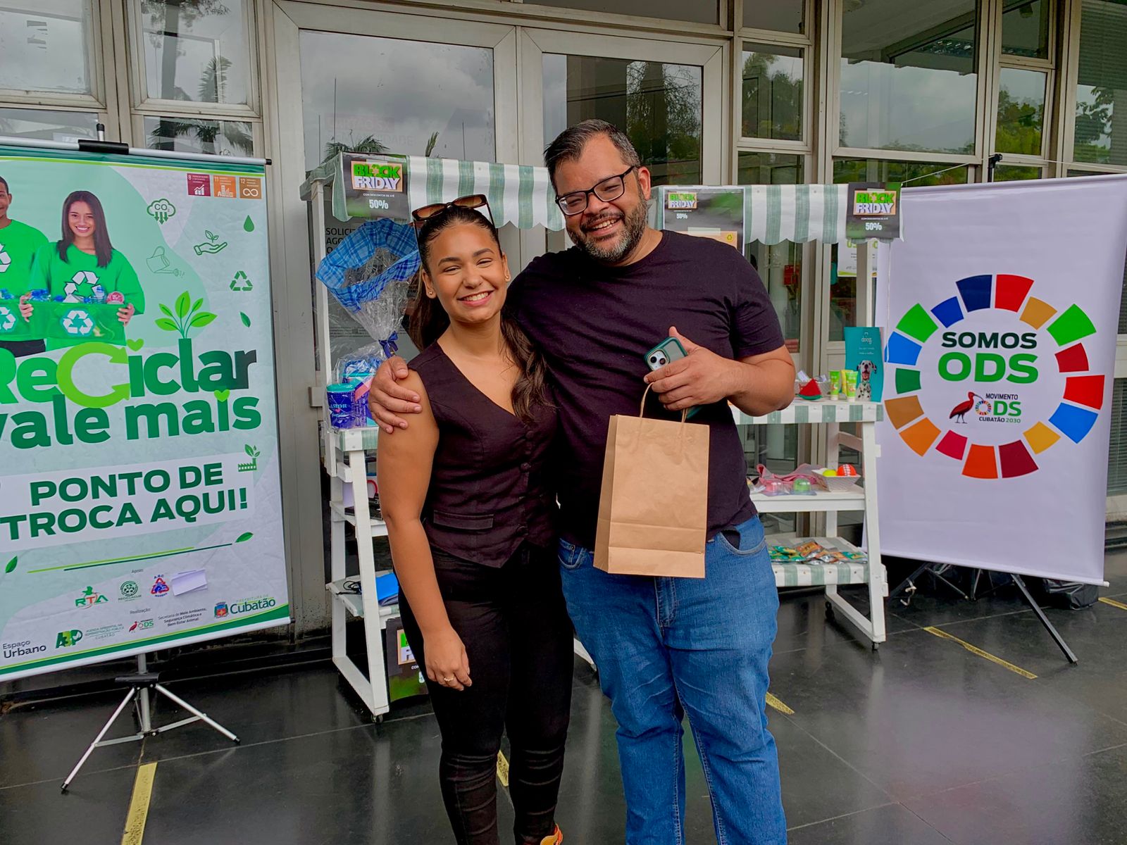 A Prefeitura de Cubatão, por meio da Secretaria Meio Ambiente, Segurança Climática e Bem-estar Animal, promoveu mais um Dia Verde, na manhã desta sexta-feira (14), para os servidores municipais, na entrada do Paço Municipal. A ação é uma ecotroca de embalagens plásticas por produtos eletrônicos, decorativos, de higiene pessoal, cosméticos, produtos para pets entre outros. A última edição do ano veio com promoções da Black Friday, com 50% de desconto: para participar bastava tirar uma foto de um dos estandes e publicar no Instagram, marcando os perfis da Prefeitura (@prefeituradecubatao) e do Movimento ODS (@odscubatao).
