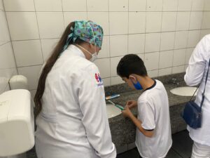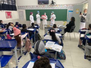 No início de junho, 79 universitários participaram das atividades de saúde bucal em quatro escolas municipais: UME Almerinda Monteiro de Carvalho e UME Antônio Ortega Domingues, no Jardim Casqueiro; UME Estado de São Paulo e UME Jayme João Olcese, no Jardim Anchieta.